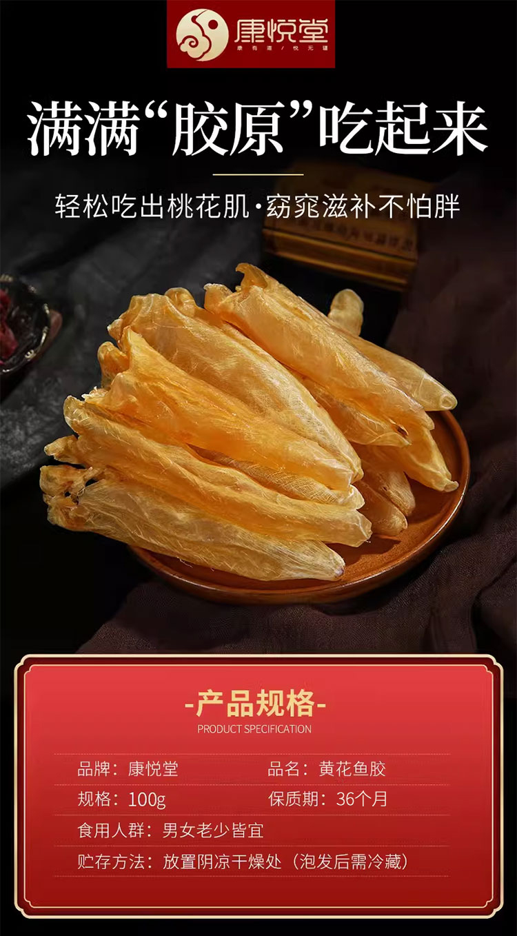 【黄花鱼胶】正品黄花胶鱼胶干货100g深海花胶鱼肚女性鸡汤即食