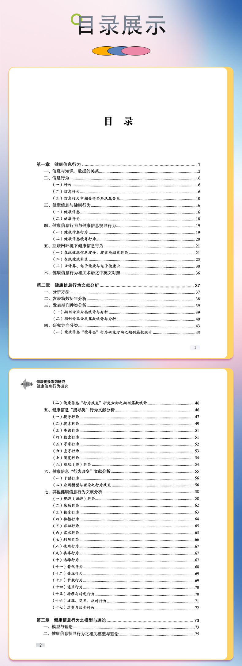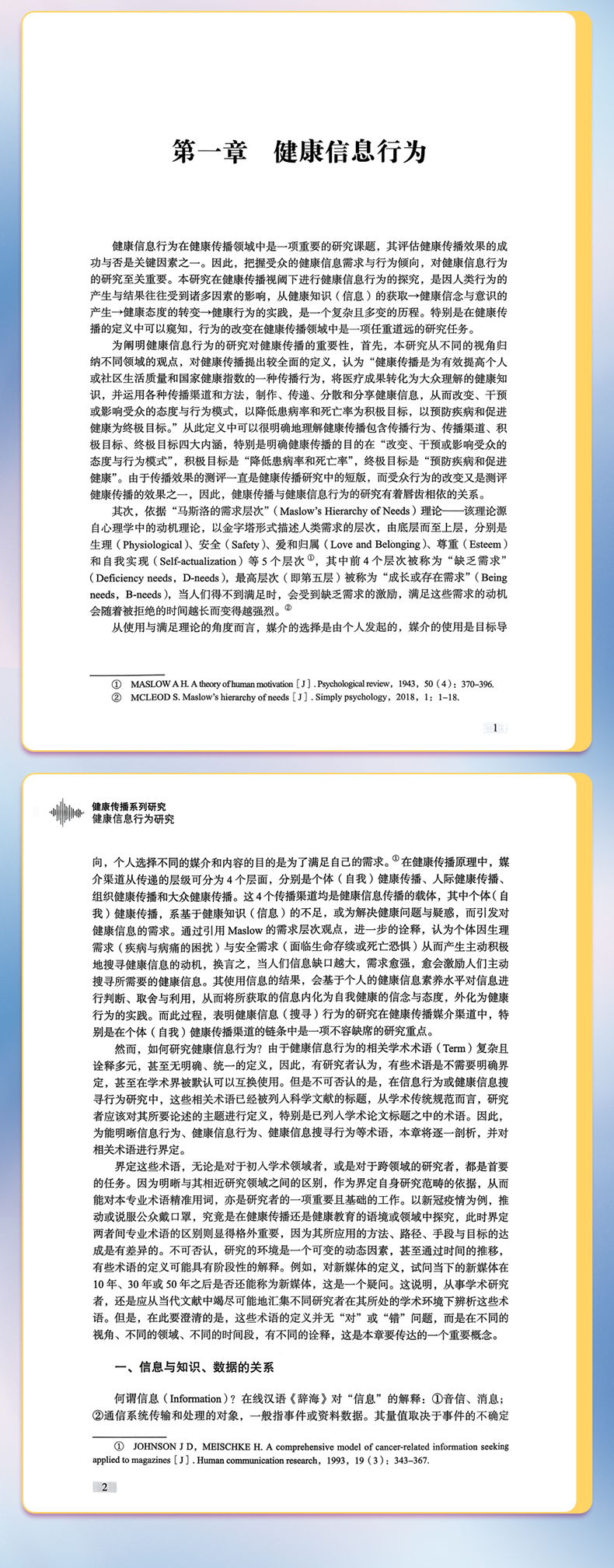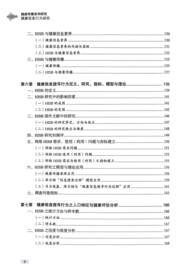 本专著通过对网络健康信息需求、网络健康信息使用(利用)、网络健康信息搜寻过程三个方面核心内容的研究,对置于网络健康传播视角下的影响因素进行了深入探讨。本书的论证的结果,将为有意研究健康传播者提供一种分析范式与写作模式,为后续健康传播的行为效果研究、政策研究提供详实且具科学性的数据作为参考依据。