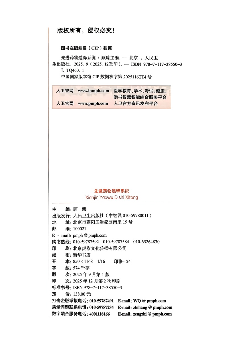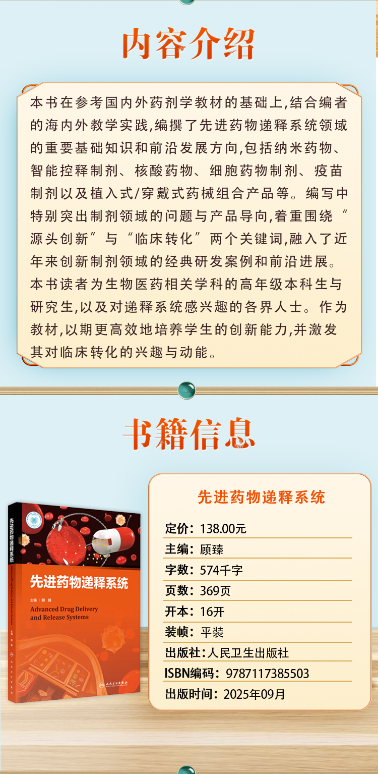 先进药物递释系统 顾臻 主编 内源响应性药物递释系统 外源响应性药物递释系统 口服药物递释系统 9787117385503 人民卫生出版社