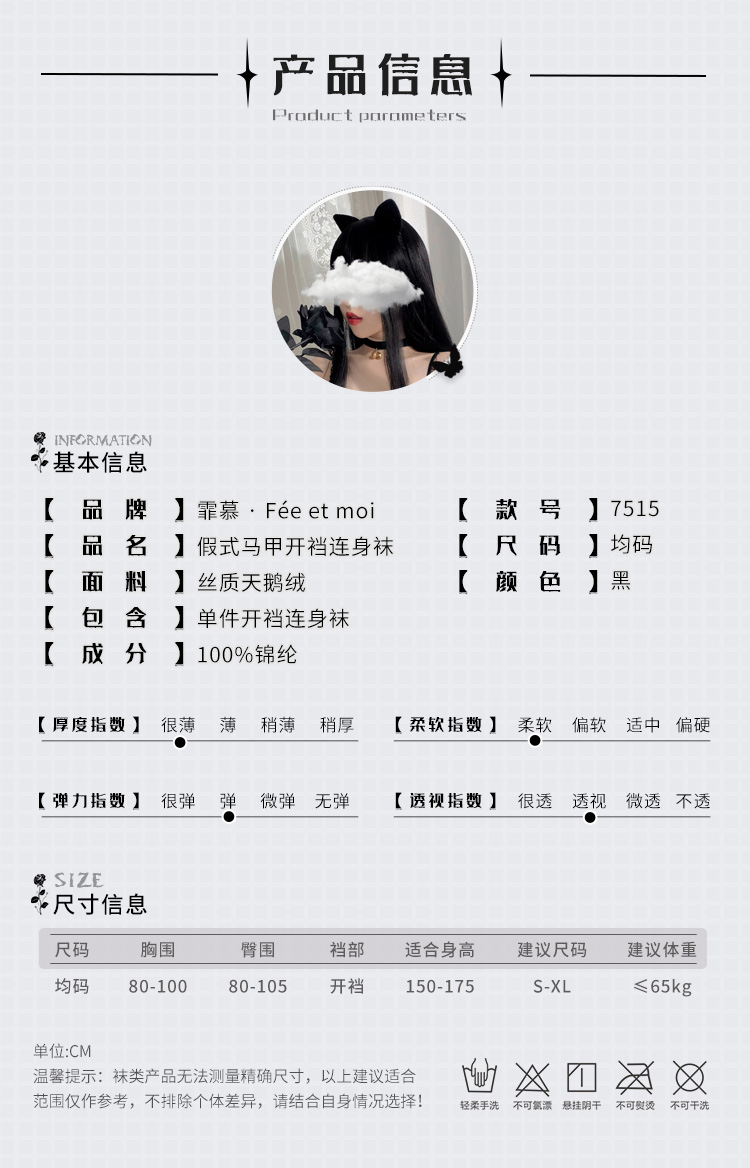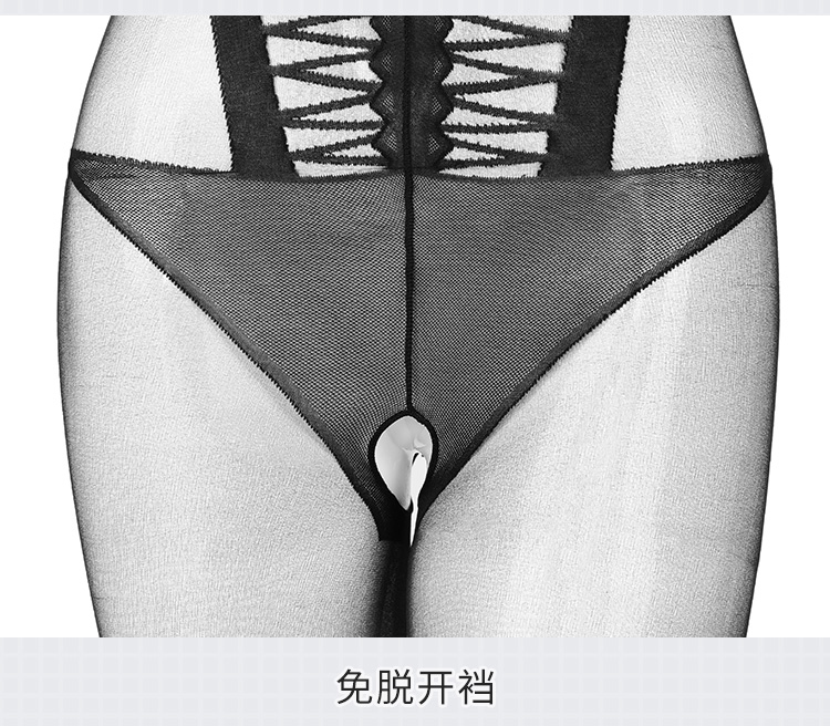 霏慕假式马甲开裆连身袜7515 透明紧身衣漏洞免脱连体袜诱惑黑丝情趣内衣制服