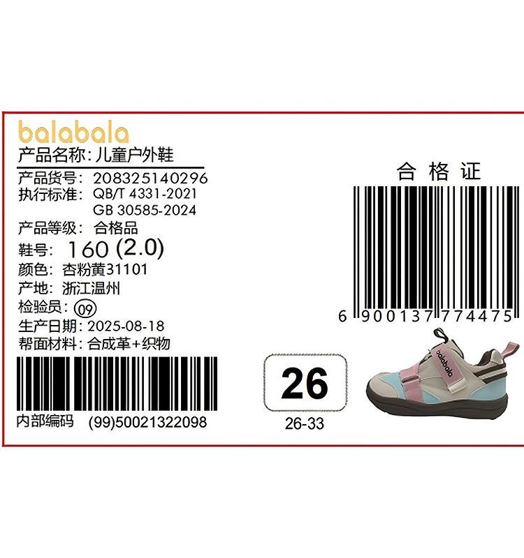 巴拉巴拉童鞋儿童运动鞋女童户外鞋透气舒适2025新款春秋休闲鞋子