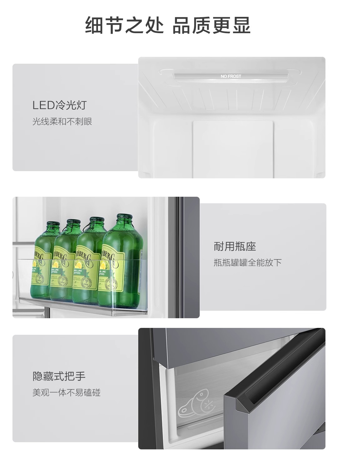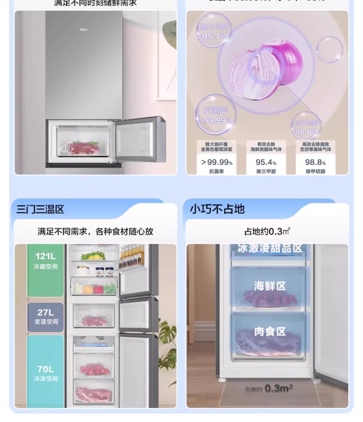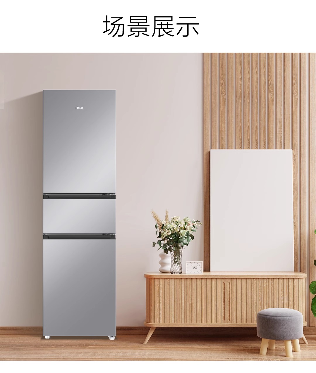 海尔218L升三开门家用小型风冷无霜节能低音超薄电冰箱