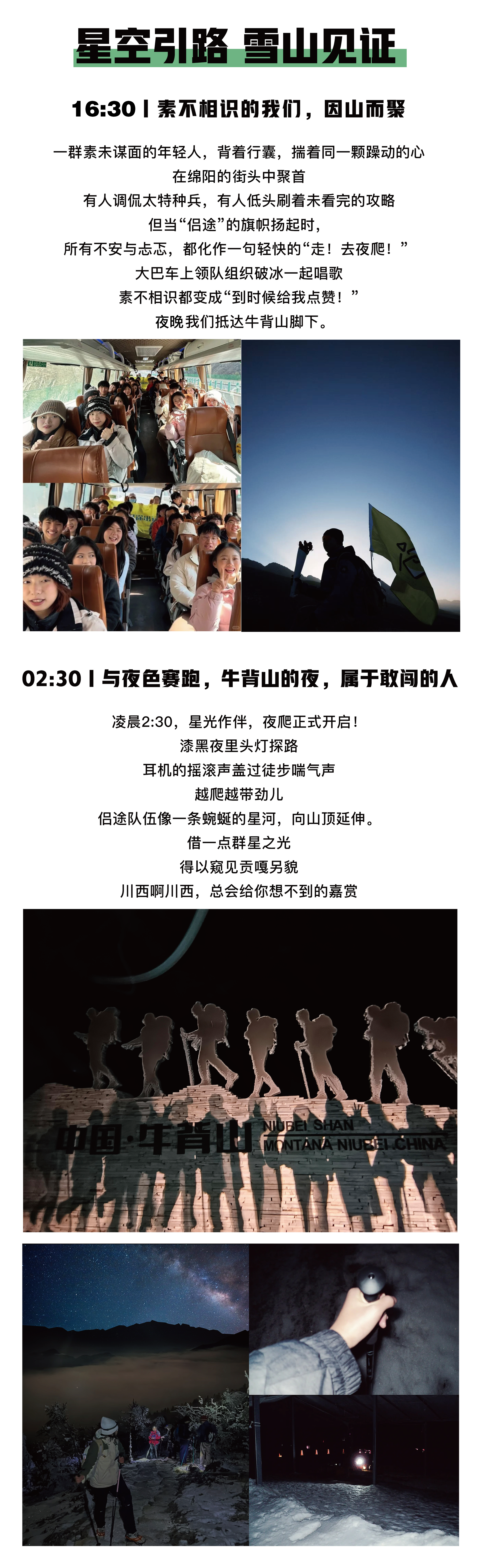 | PM | 下午16:30左右,绵阳各个出发点集合出发前往牛背山 |