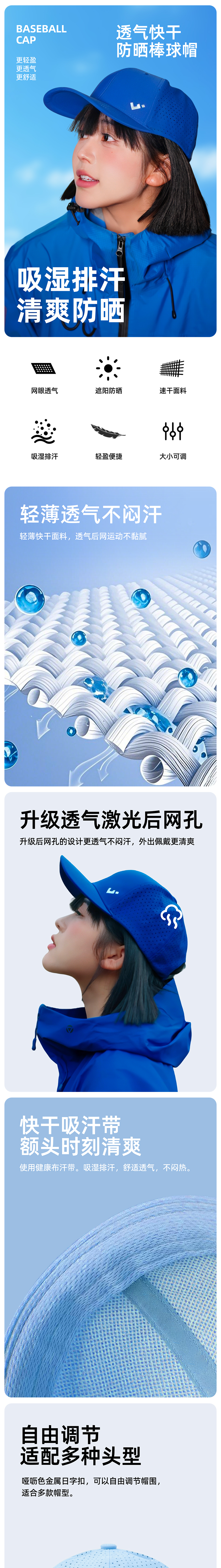 [618福利,35秒杀]酷石 时尚速干透气可调户外运动鸭舌帽男女同款宽帽檐