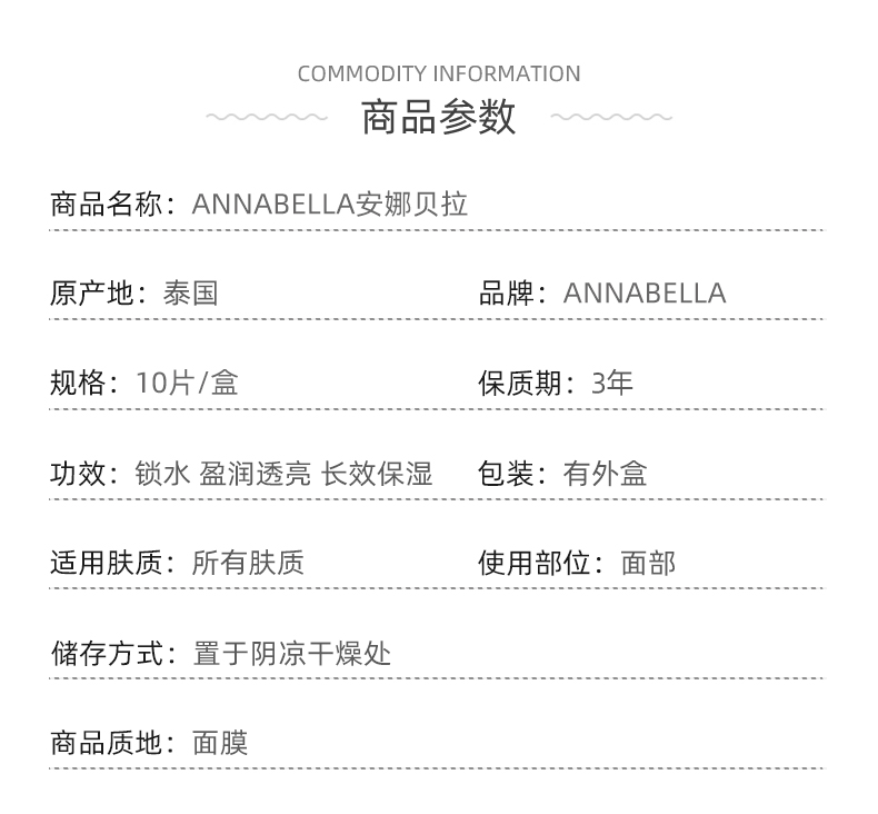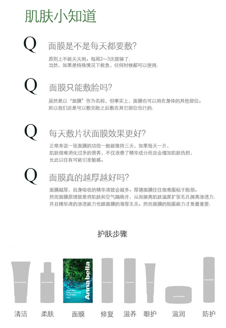 【中欧班列精选】泰国annabella安娜贝拉补水保湿海藻面膜 10片DB
