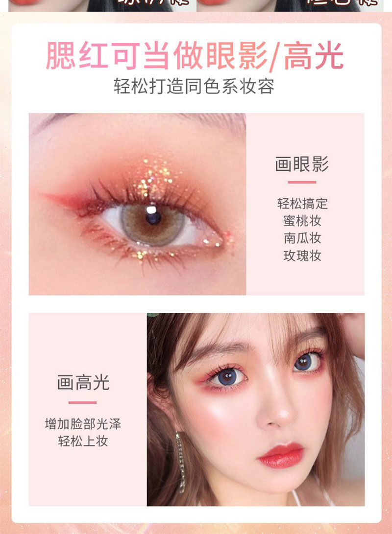 腮红高光三合一高颜值学生少女心粉桃奶酪防水裸妆渐变色自然晒红