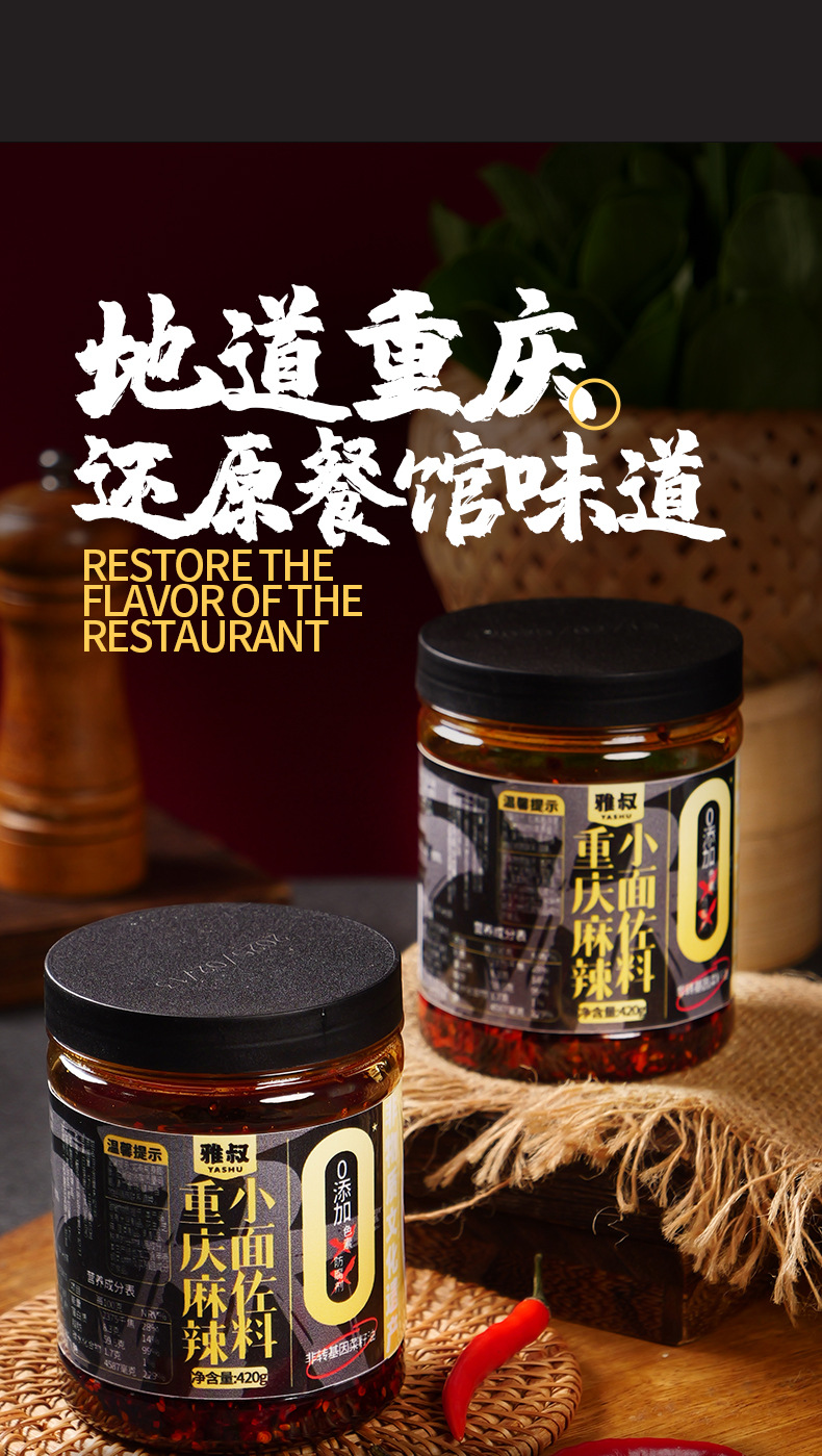 雅叔重庆小面调料420g正宗麻辣拌面酱非遗香辣酱料家用佐料拌面调料 0添加麻辣小面调料420g*2罐