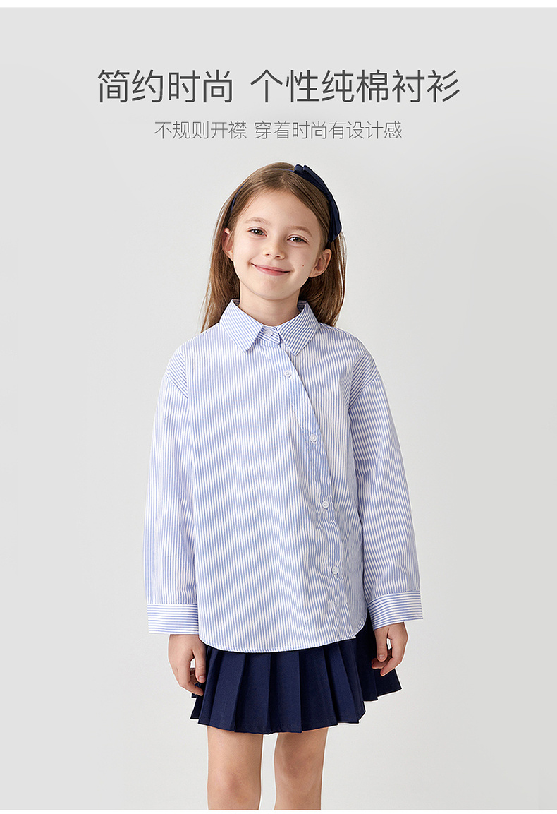 马克珍妮女童宽松不规则开襟衬衫儿童衬衣纯棉上衣秋装新款241271