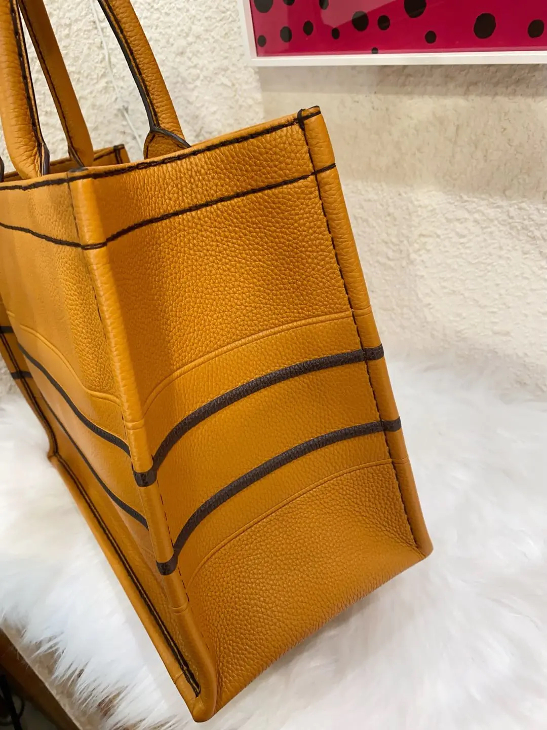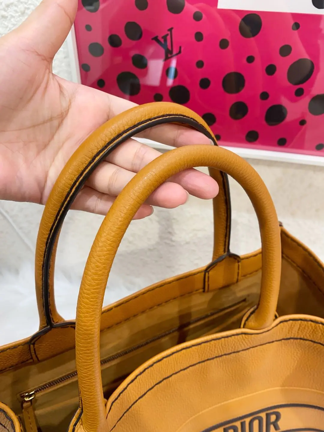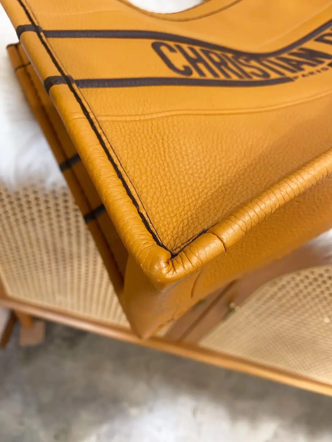 【商品详情】正品二手 Dior book tote 中号 压纹logo 焦糖色 牛皮 托特包🧀 95新 36×27。包身和边角正常使用感。22年 焦糖色和秋季更配哦