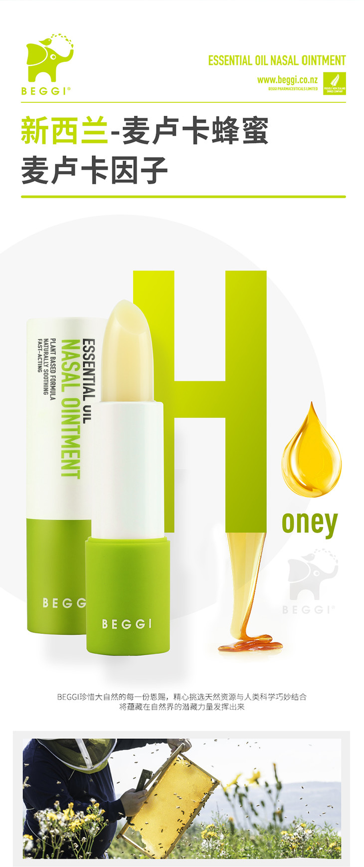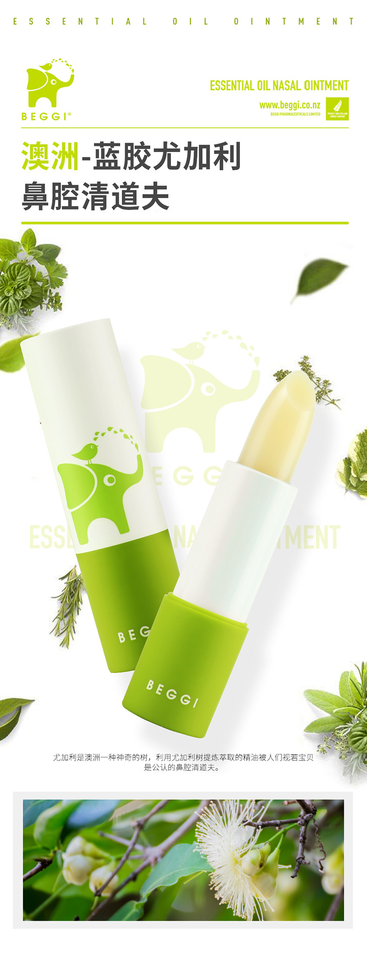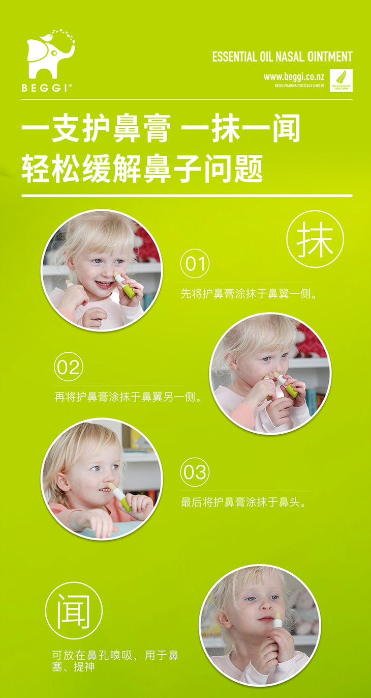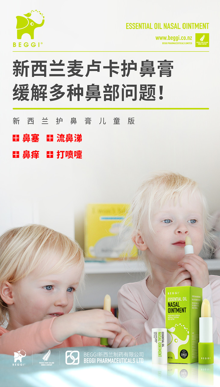 新西兰beggi护鼻膏通鼻膏鼻精灵麦卢卡精油儿童宝宝鼻塞外用涂抹