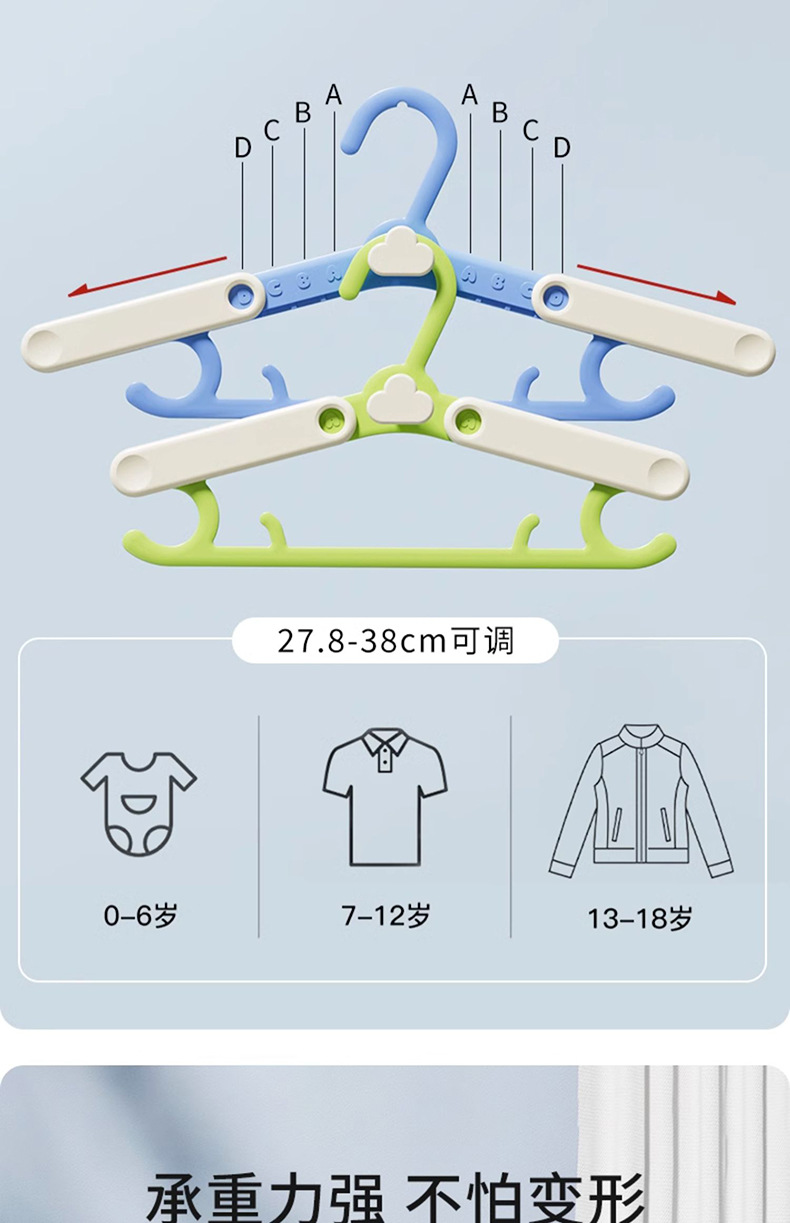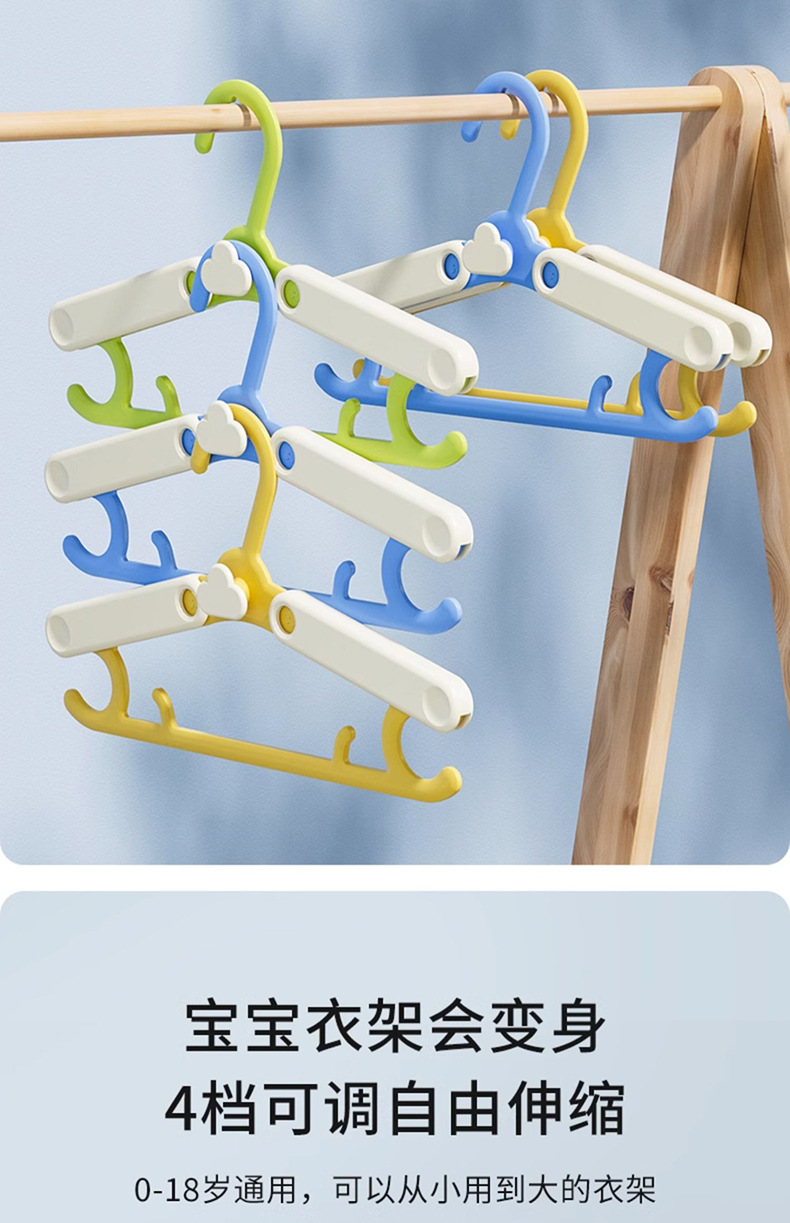 儿童衣架多功能新生婴幼儿宝宝专用伸缩晾衣架小号家用防滑挂衣撑