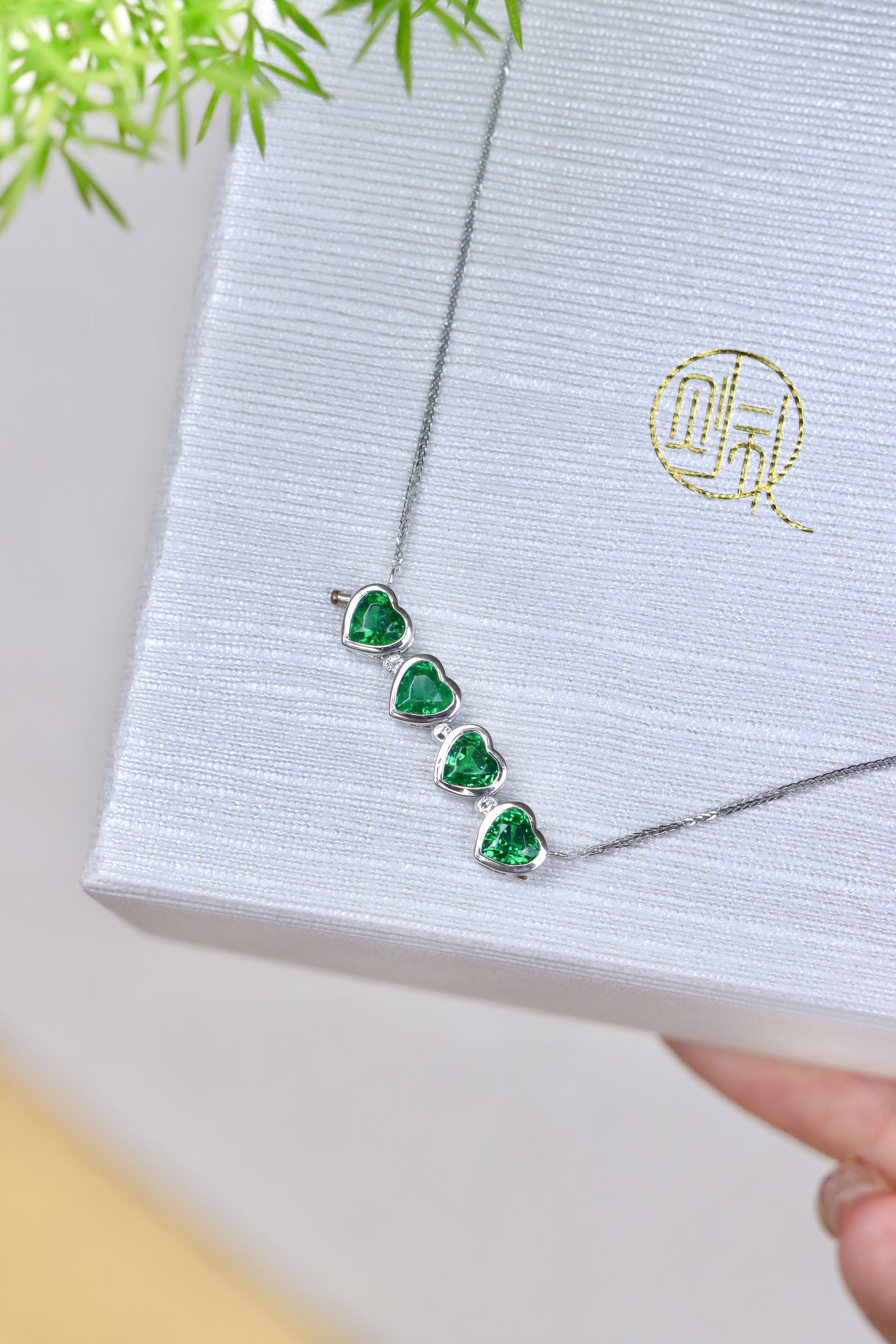 【梁小姐彩宝】两戴款!18K金肯尼亚卡扎尼绿沙弗莱幸运四叶草爱心项链1.50克拉(3-5天左右)