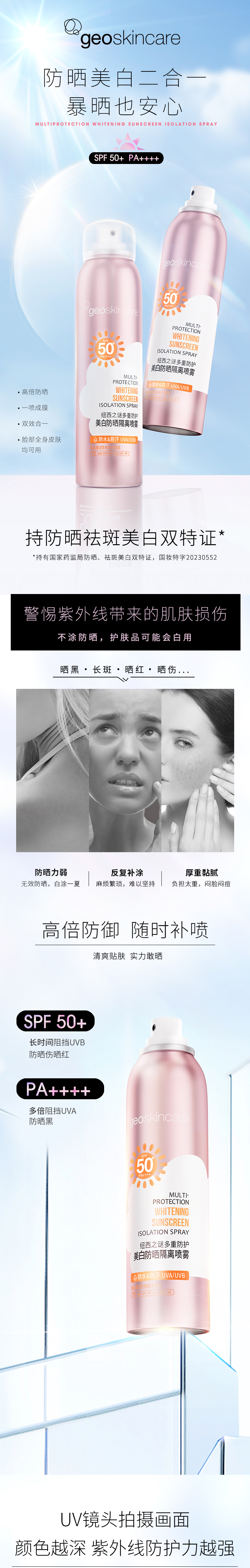 【26.3/瓶】纽西之谜多重防护美白防晒隔离喷雾SPF50+ PA++++