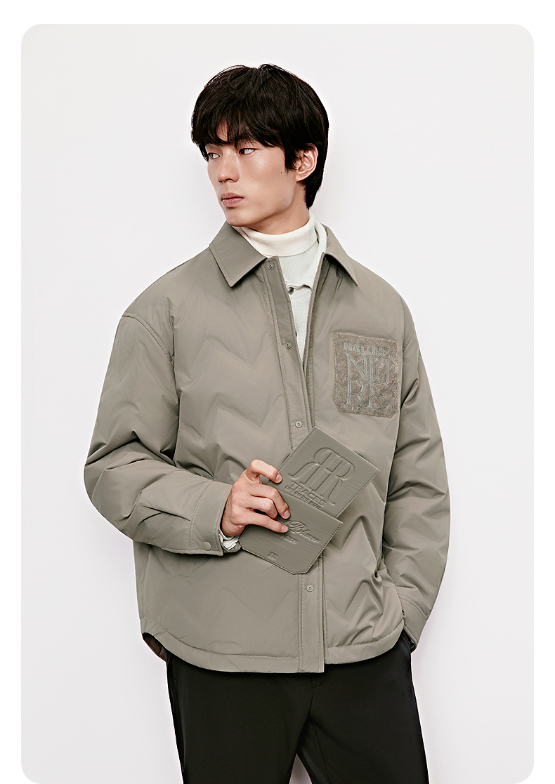 GXG男装 双色提花质感翻领夹克 下摆抽绳休闲好穿春季热卖夹克外套