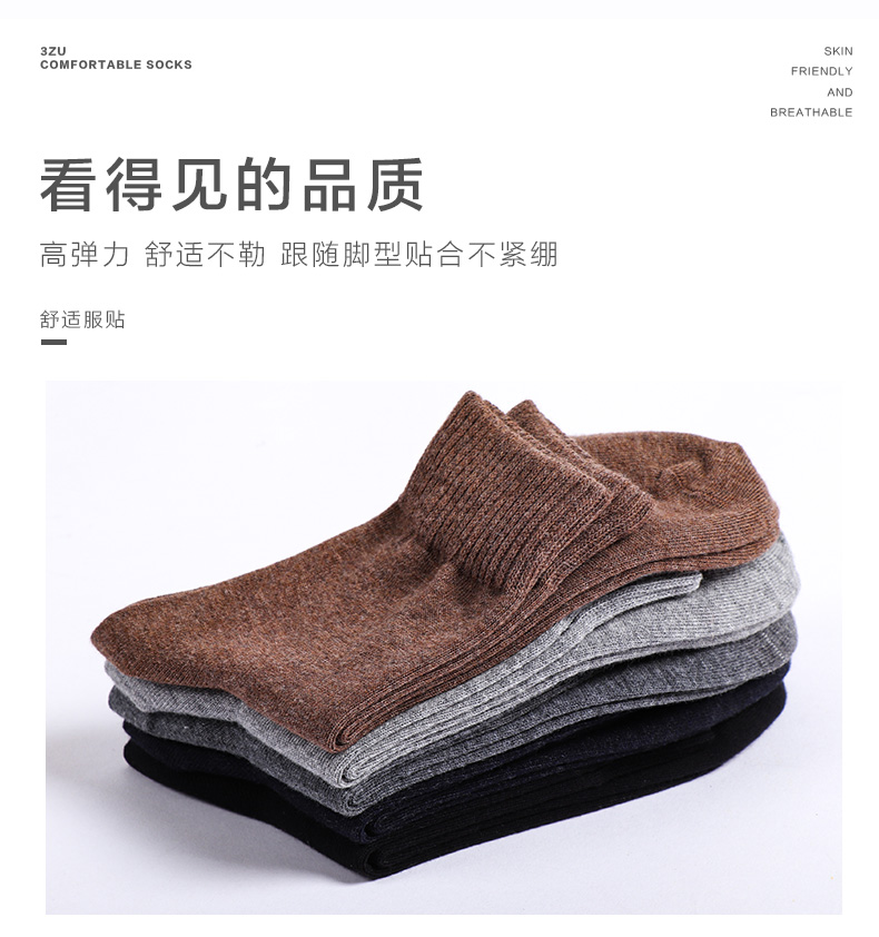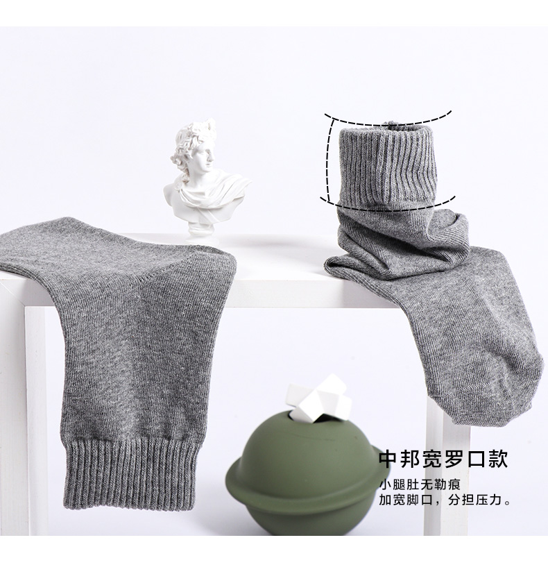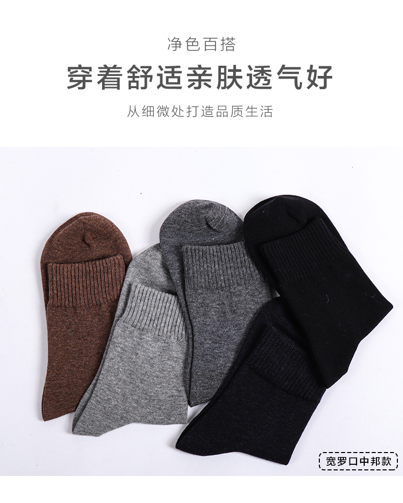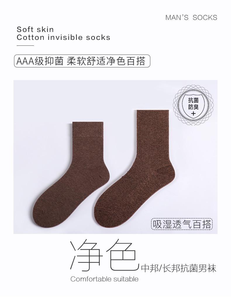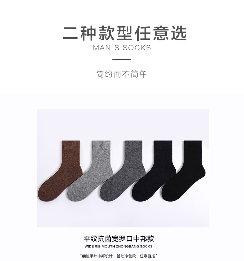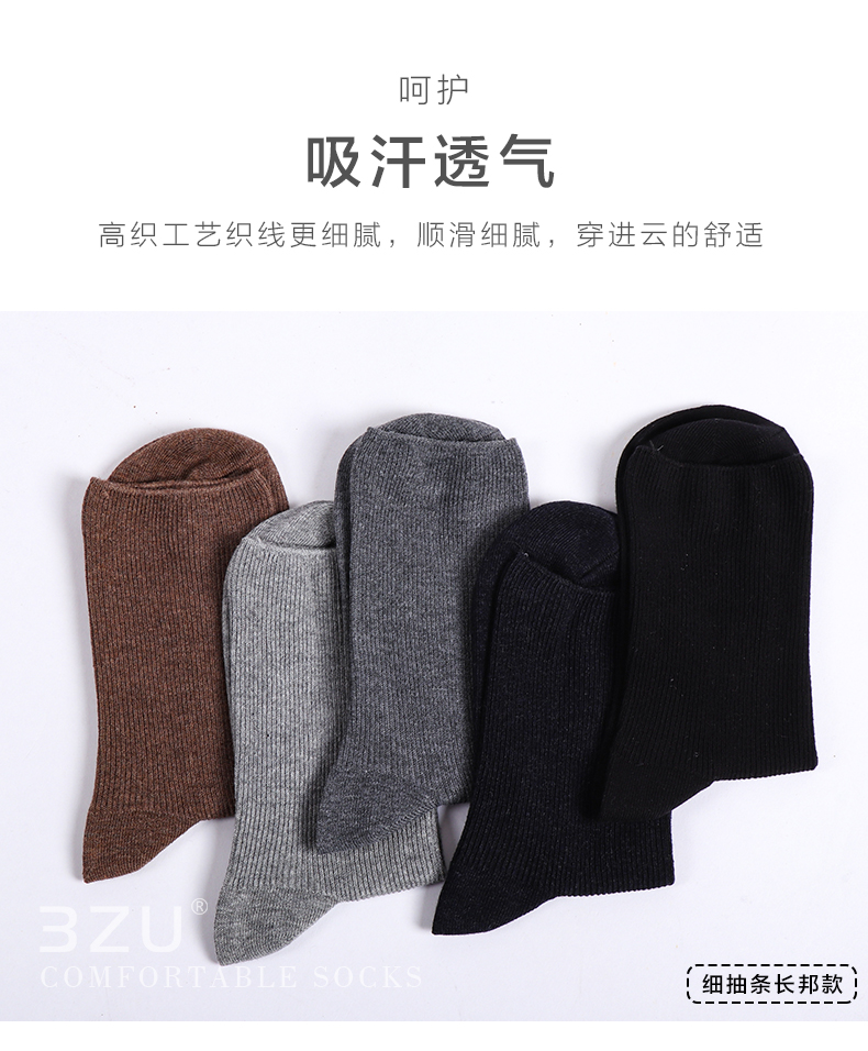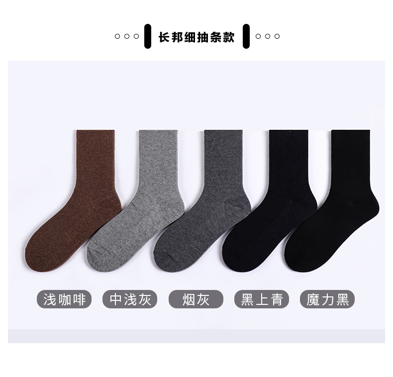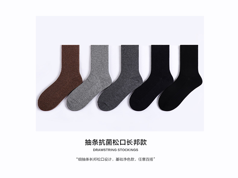 5双69.5元 春秋季男士冬季平纹中邦细抽条松口长邦棉袜抗菌男袜