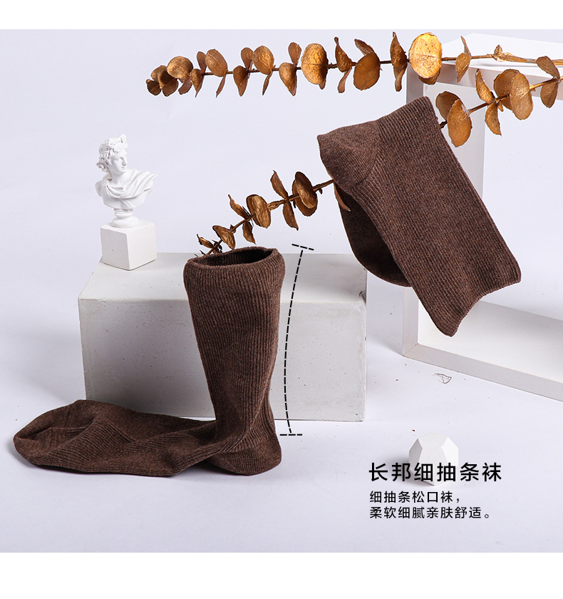 秋冬女生棉质平纹毛圈丝光羊毛春季抽条百搭小腿袜过膝袜三骨四骨袜