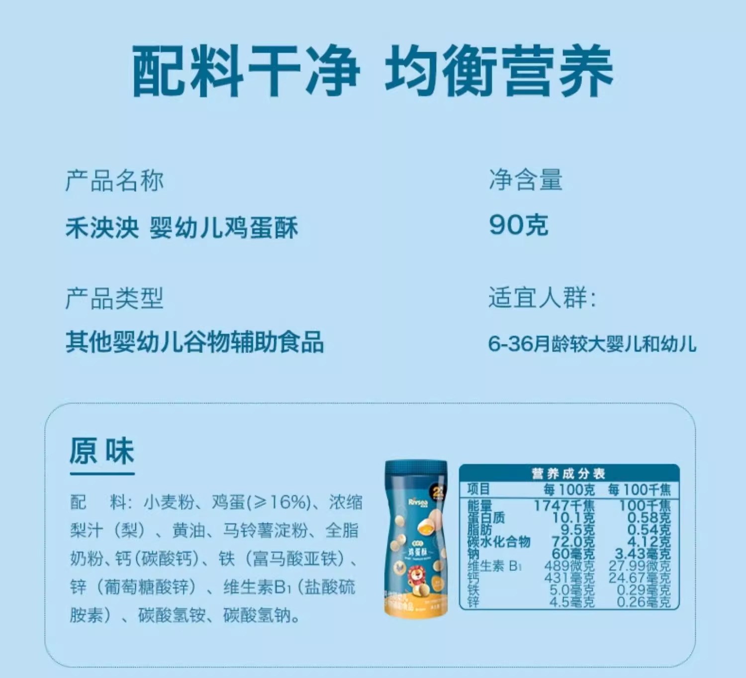 禾泱泱婴幼儿鸡蛋酥90g/盒