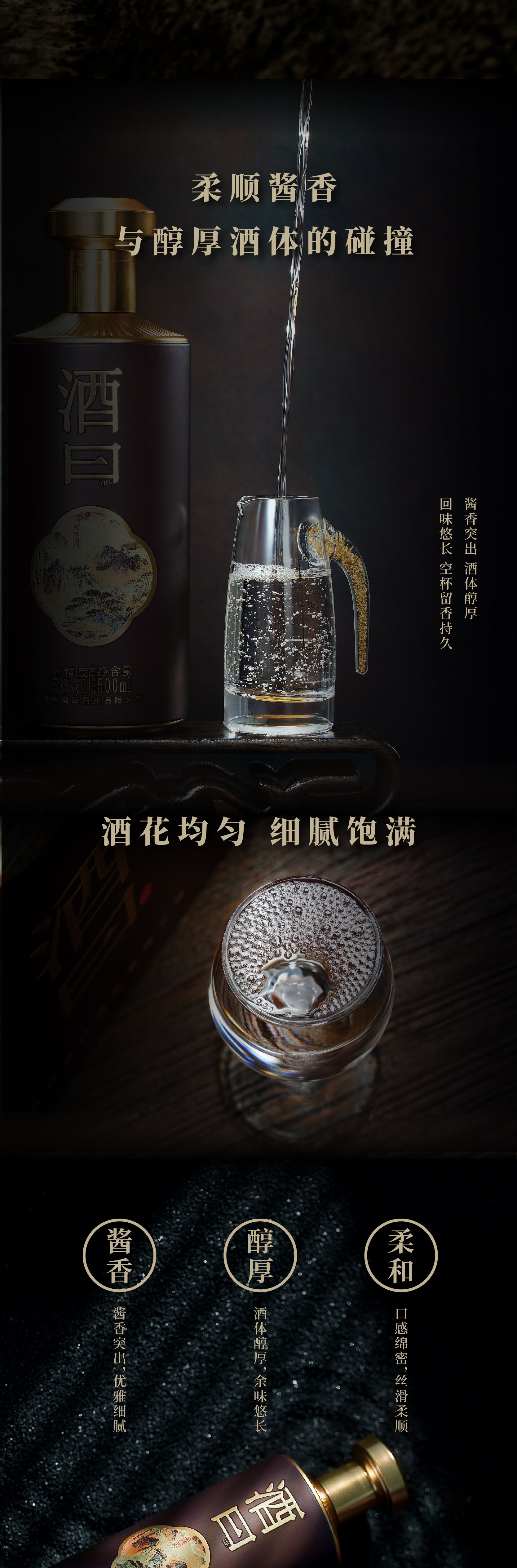 酒体是小批量勾调,丰满柔和,陈香突出,醒酒快