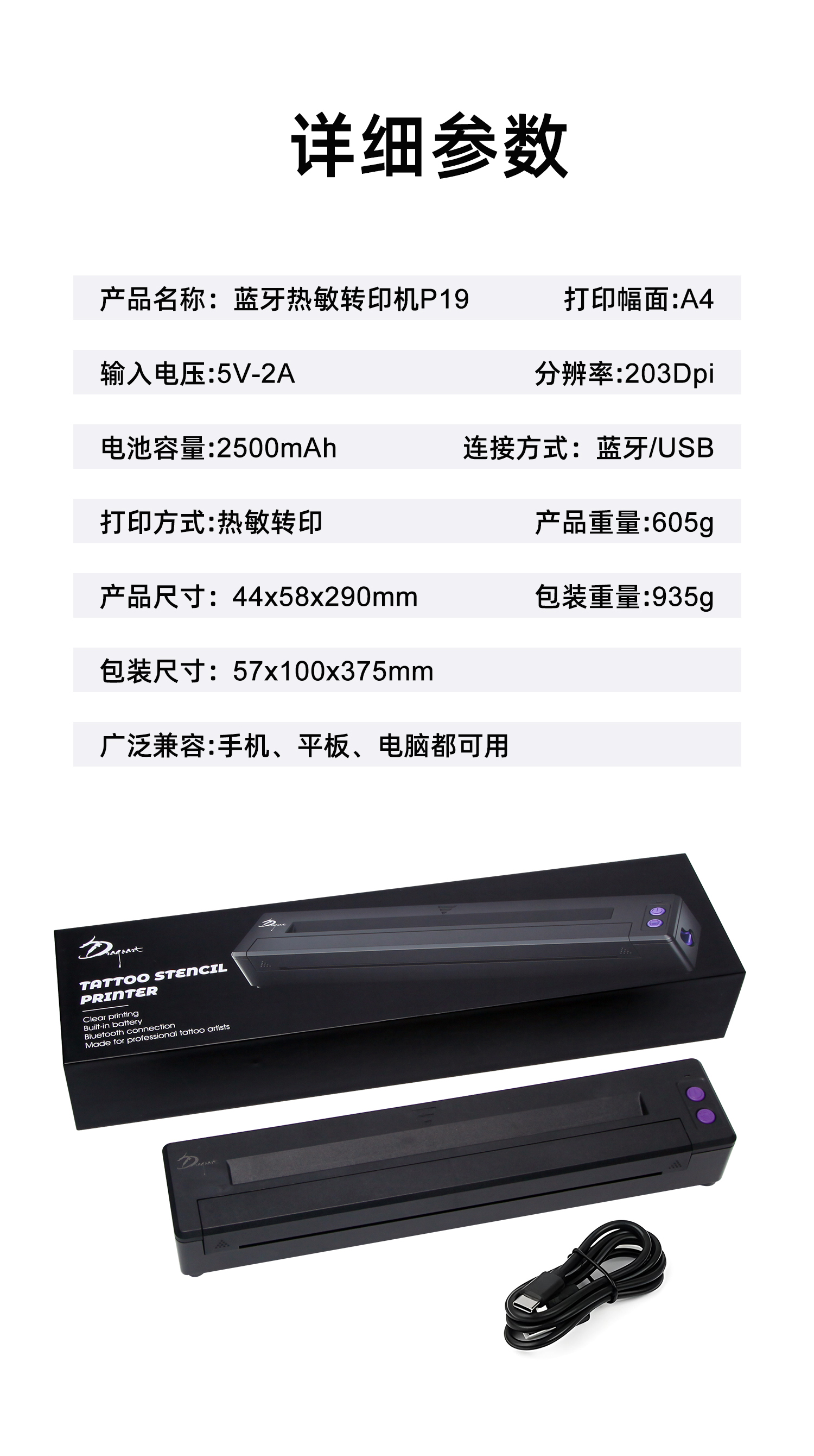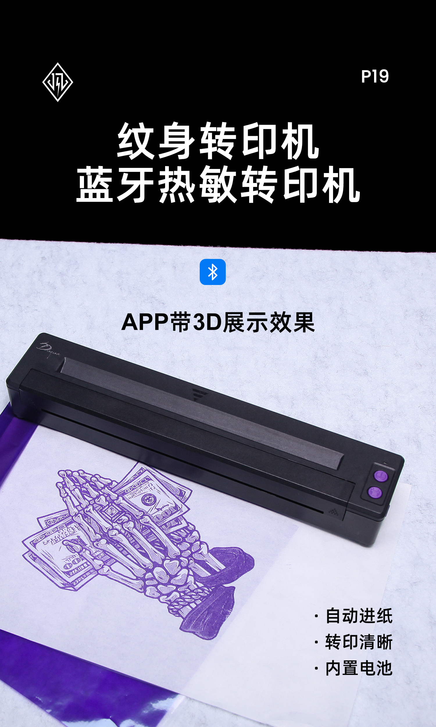 纹身转印机原装正品P19热敏型无线打印机刺青图稿拷贝机惊蛰纹身器材