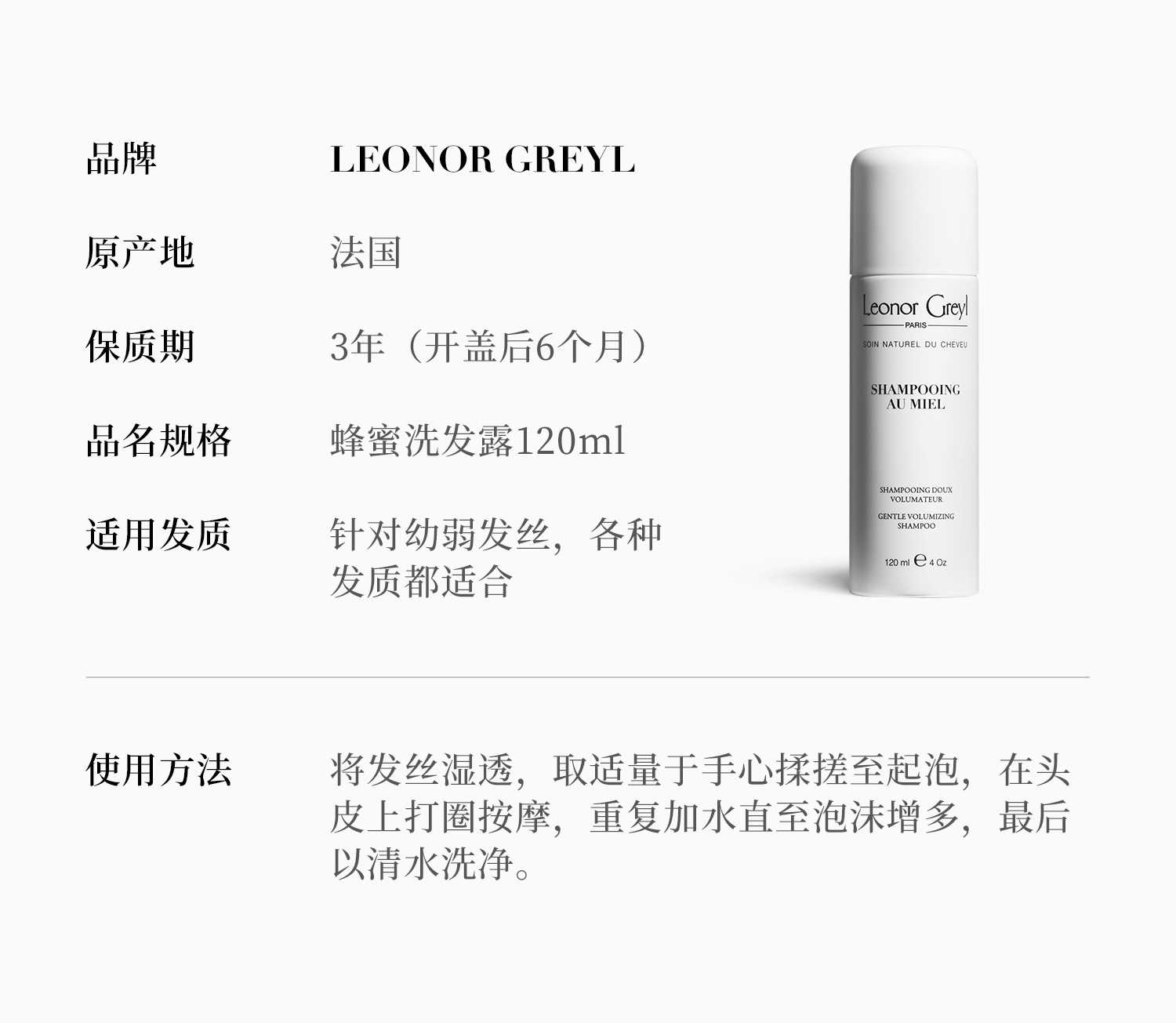 保税直发 Leonor Greyl 蜂蜜洗发水120mL