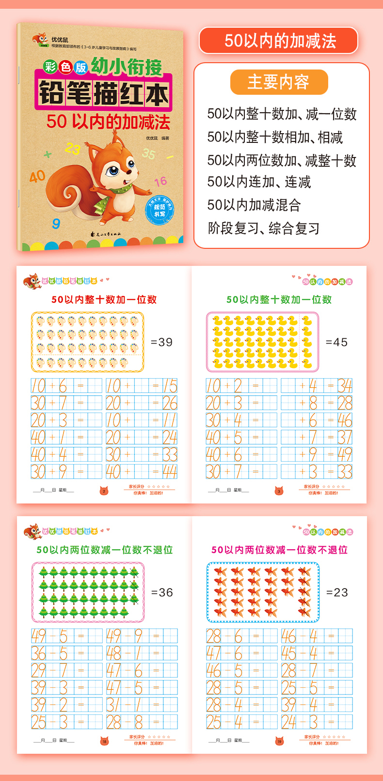 (仓发) 彩色版幼小衔接铅笔描红本 50以内的加减法 数字分解与合成/花山文艺出版社/优优鼠/9787551149204