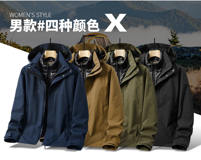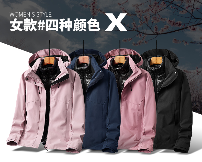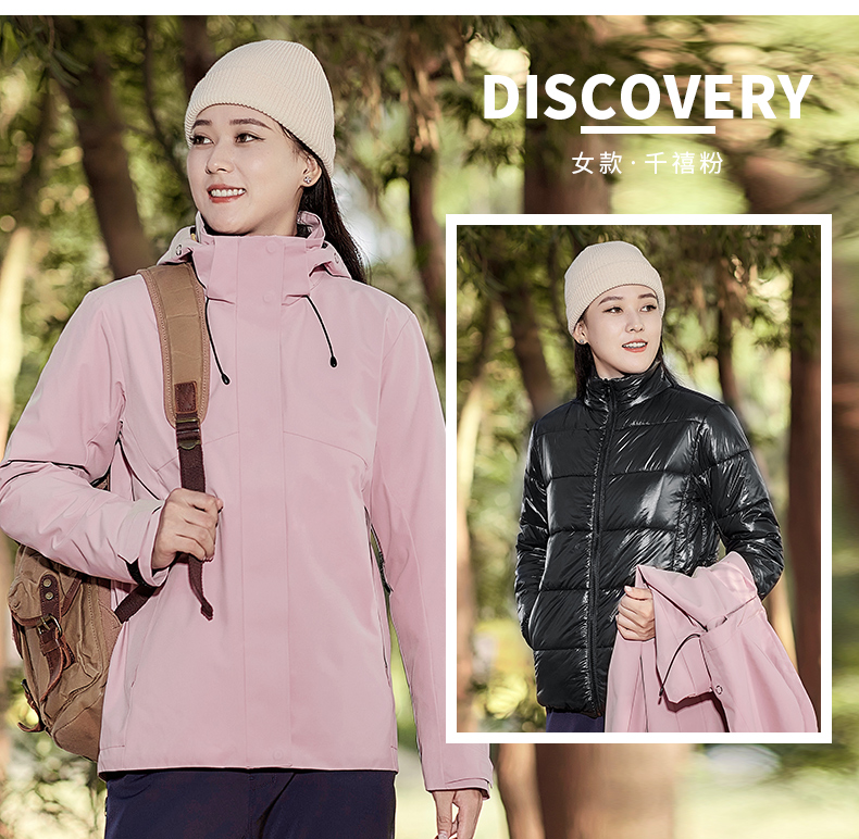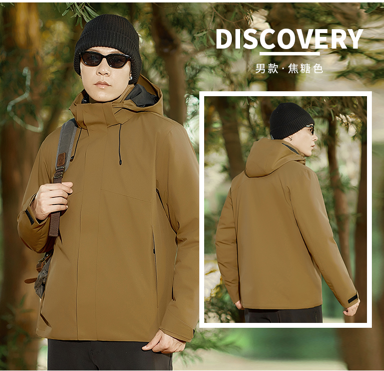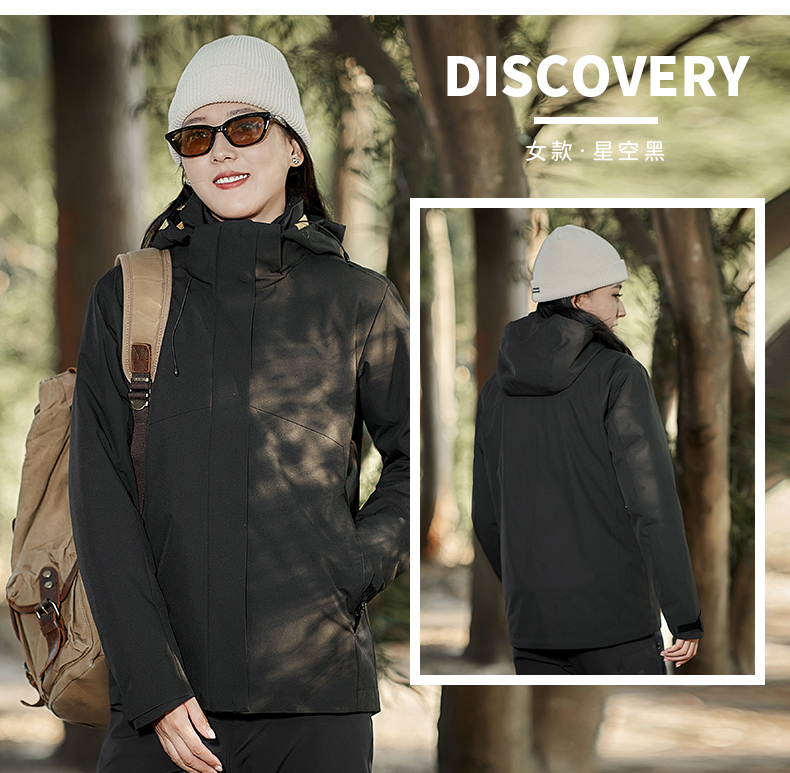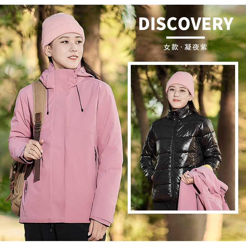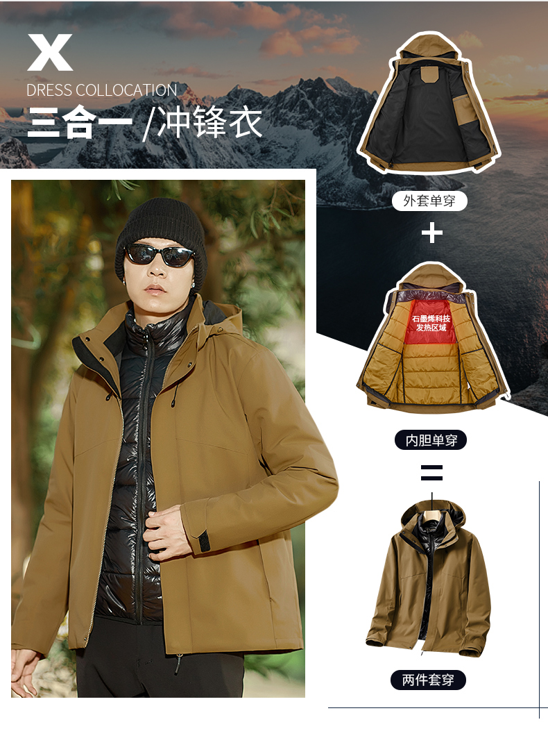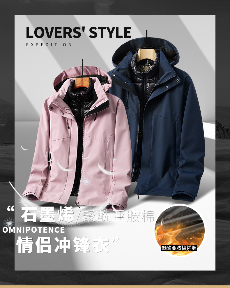 户外达人款 情侣三合一户外冲锋衣石墨烯发热面料聚酰亚胺棉内胆双重锁温 男女款保暖两件套BS23061A-T