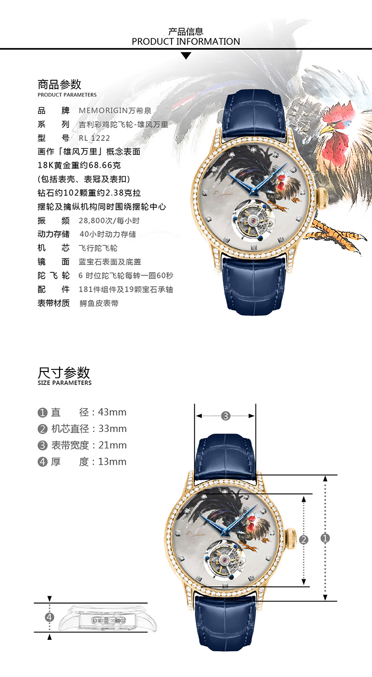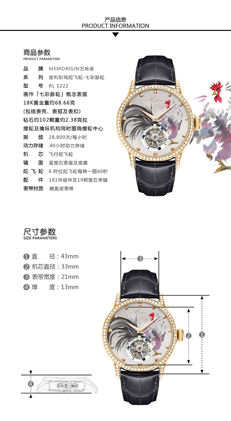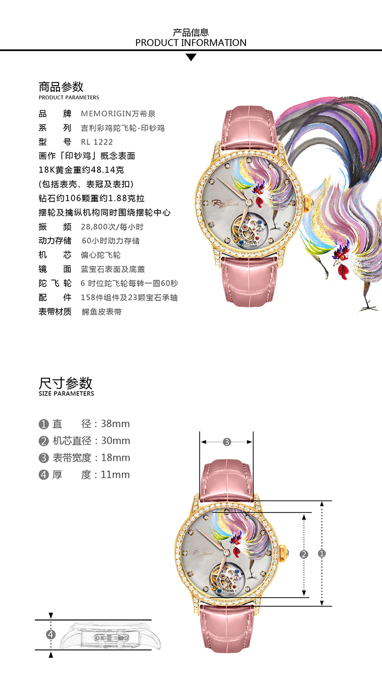 MEMORIGIN万希泉吉利彩鸡陀飞轮男吕良伟腕表黄金钻石女机械手表