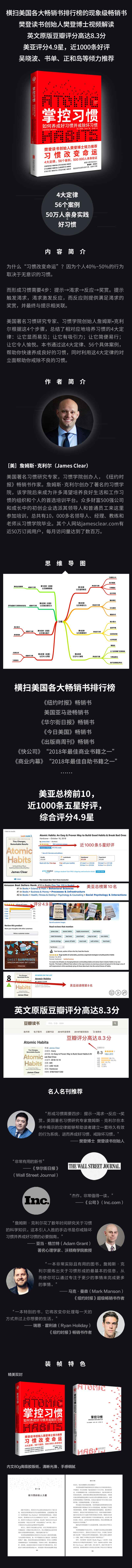 1.横扫美国各大主流媒体的现象级畅销书。荣获《纽约时报》畅销书、《华尔街日报》畅销书、《今日美国》畅销书、《出版商周刊》畅销书、《快公司》畅销书、《商业内幕》畅销书。美亚评论高达928条,综合评分4.9星(满分5星),出版今已经雄踞美亚畅销书总榜32周。(数据截止到2019年6月初)