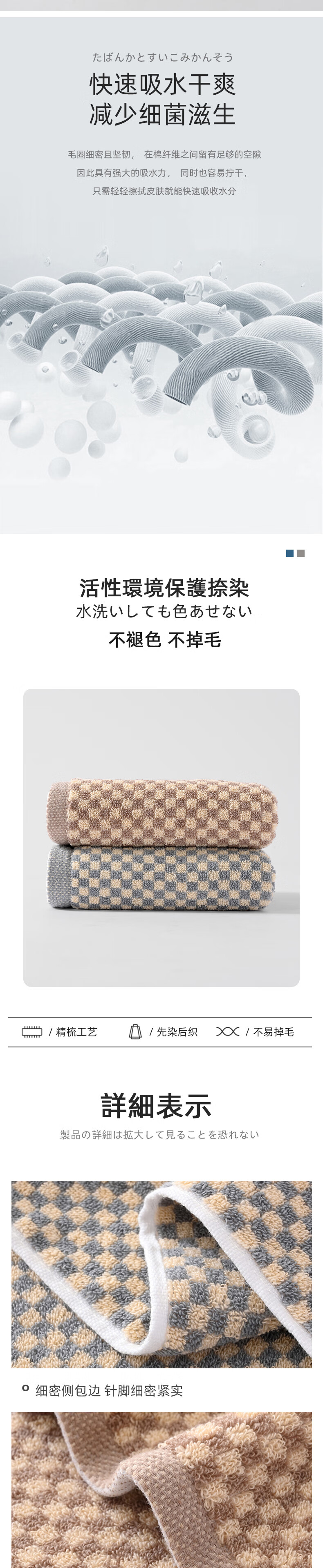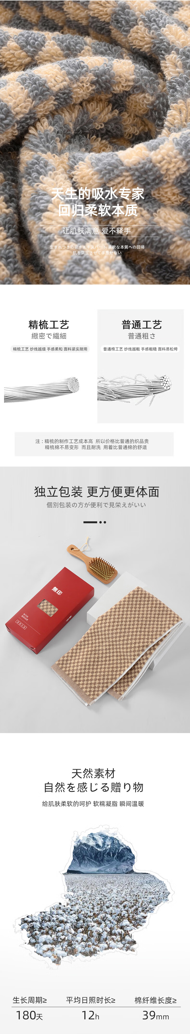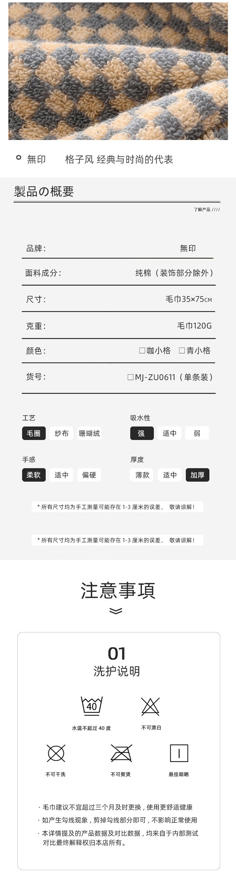 【分仓直发包邮】無印良品品牌格纯棉毛巾单条装(咖小格/青小格)MJ-zu0611