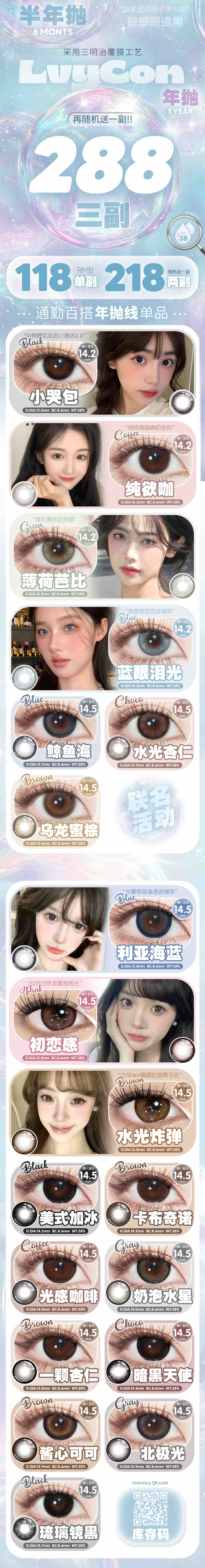 lvycon 年抛&半年抛108/副208/2副278/3副,小哭包纯欲咖卡薄荷芭比