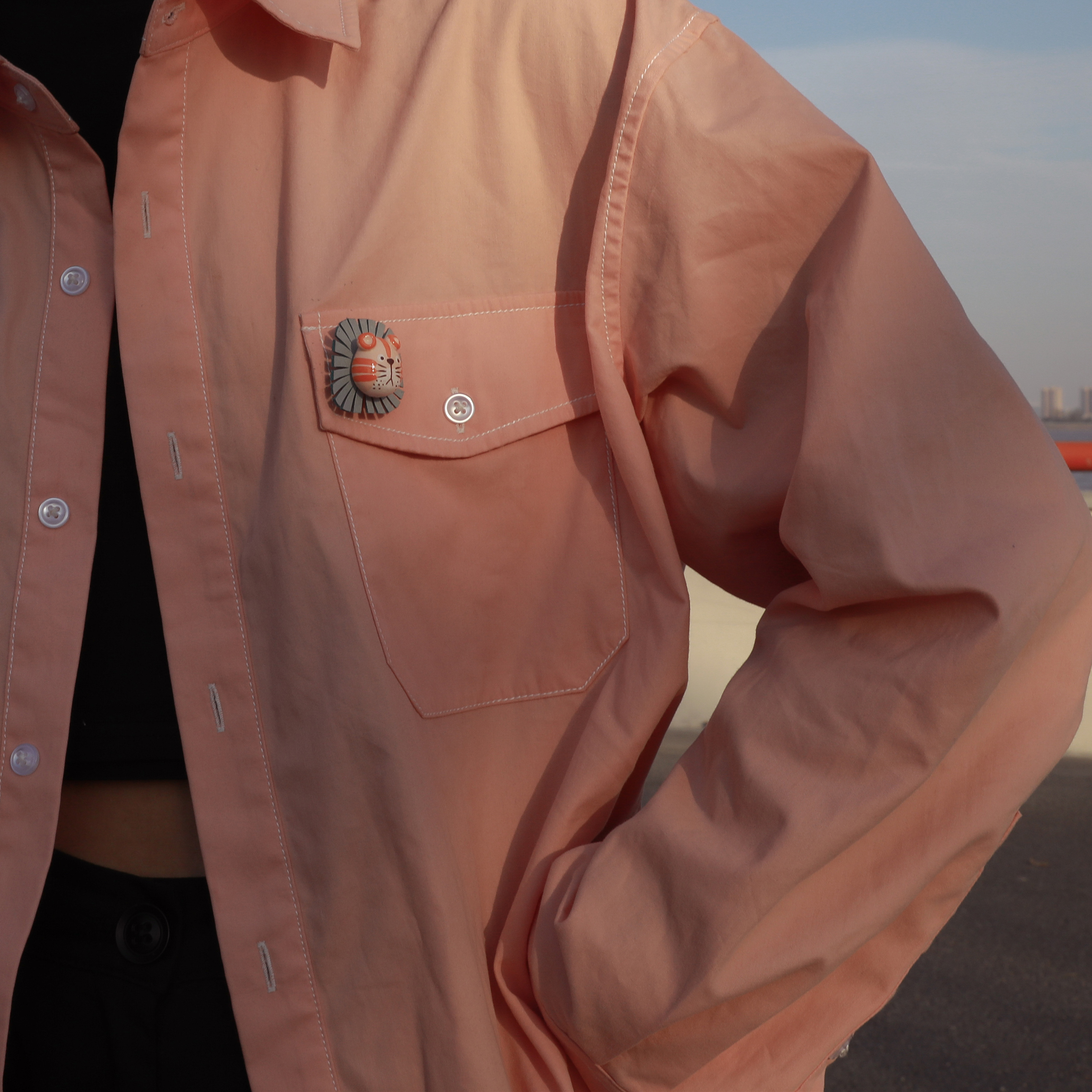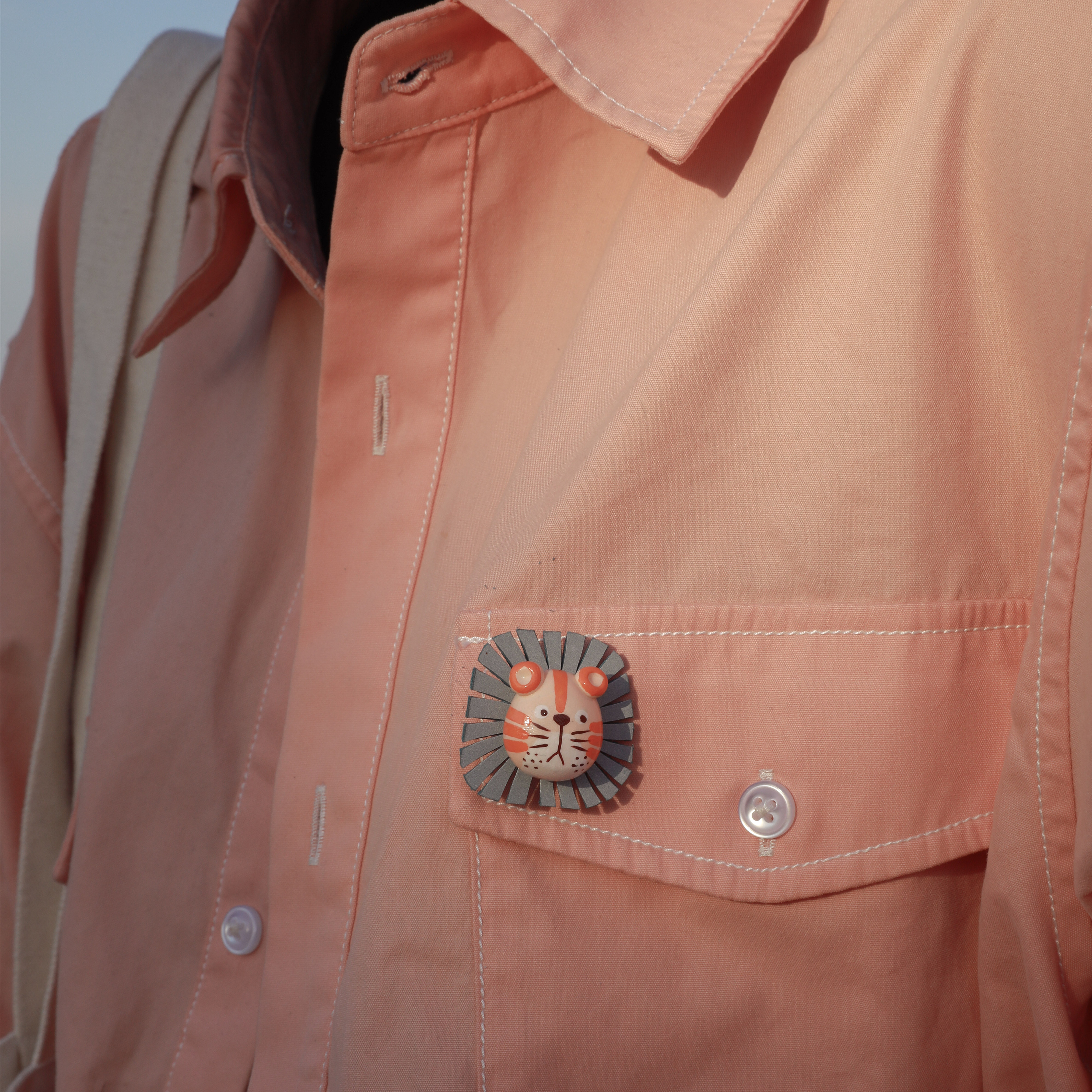 七口『小狮子头』|手绘粘土胸针