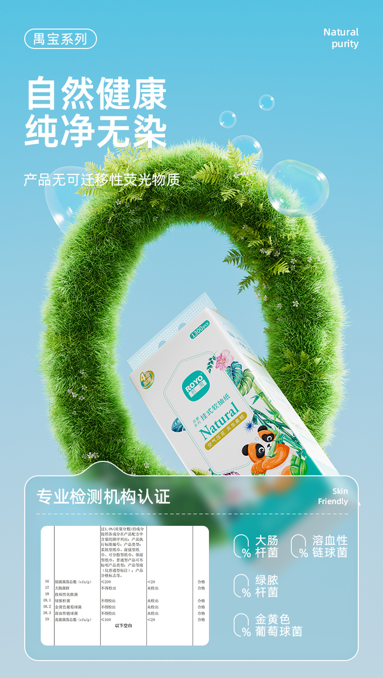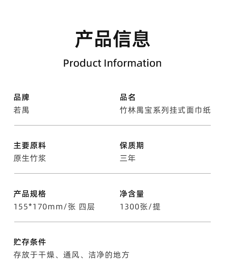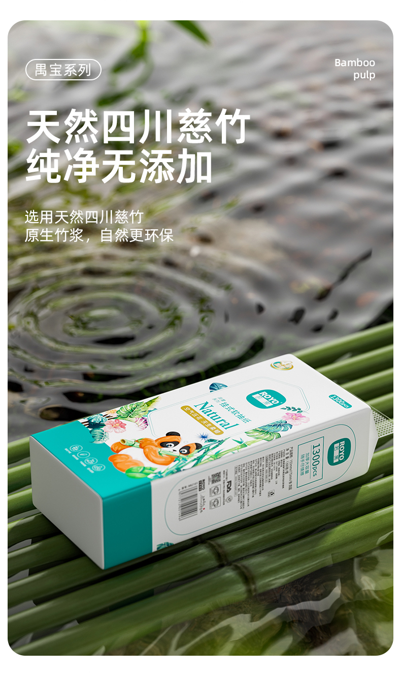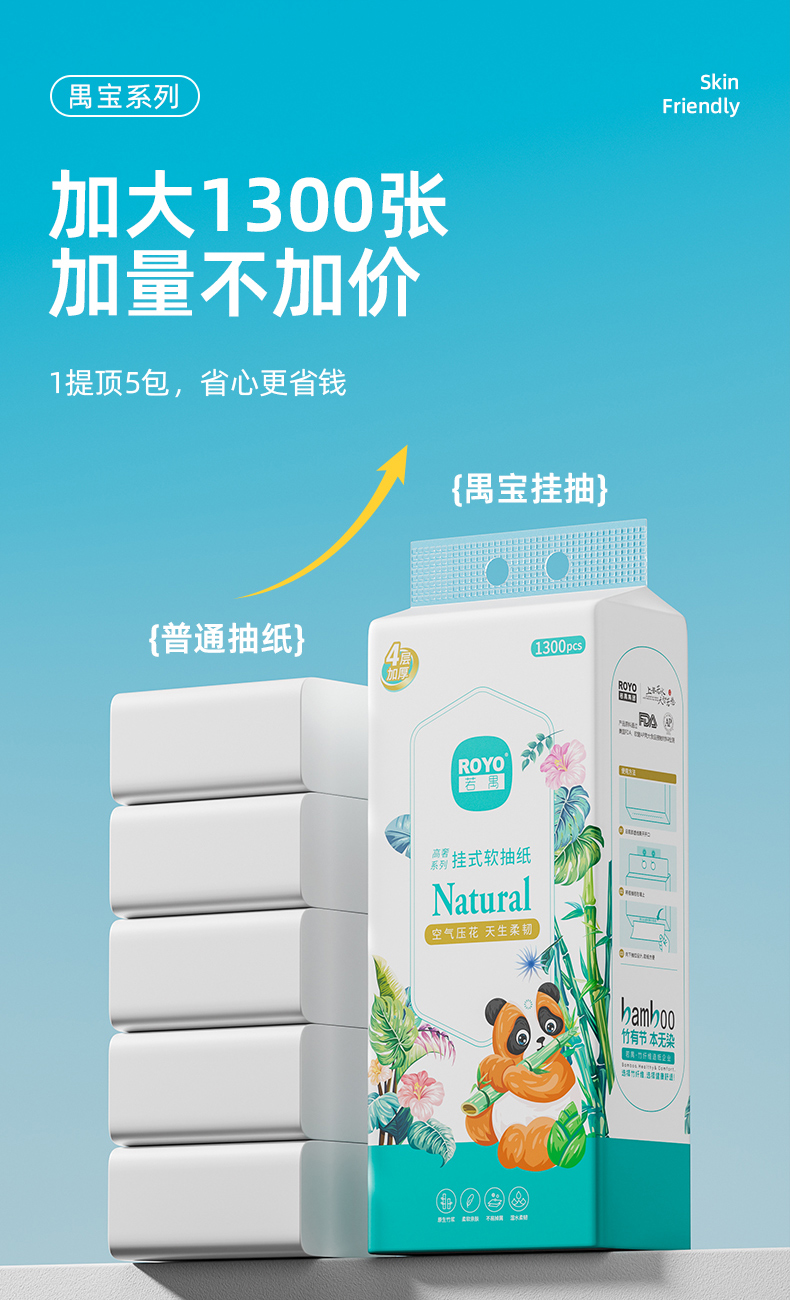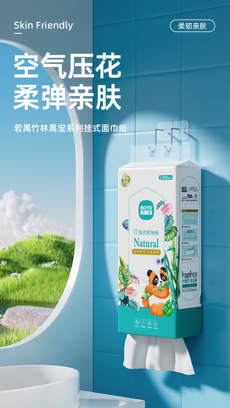 若禺挂式软抽纸高奢竹林禺宝系列4层加厚加大1300张/提原生竹浆柔软舒适湿水可用到手1件20提RR2101