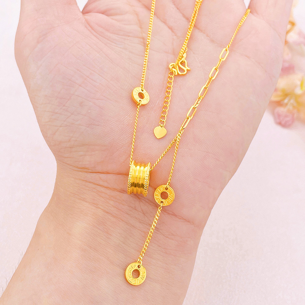【限时克减150元】足金999 【精品】调节圆环间回形方环项链英文圆环流苏弹簧小蛮腰套链(AUTL00033)预售产品下单后不退款不退货不换货不补差价