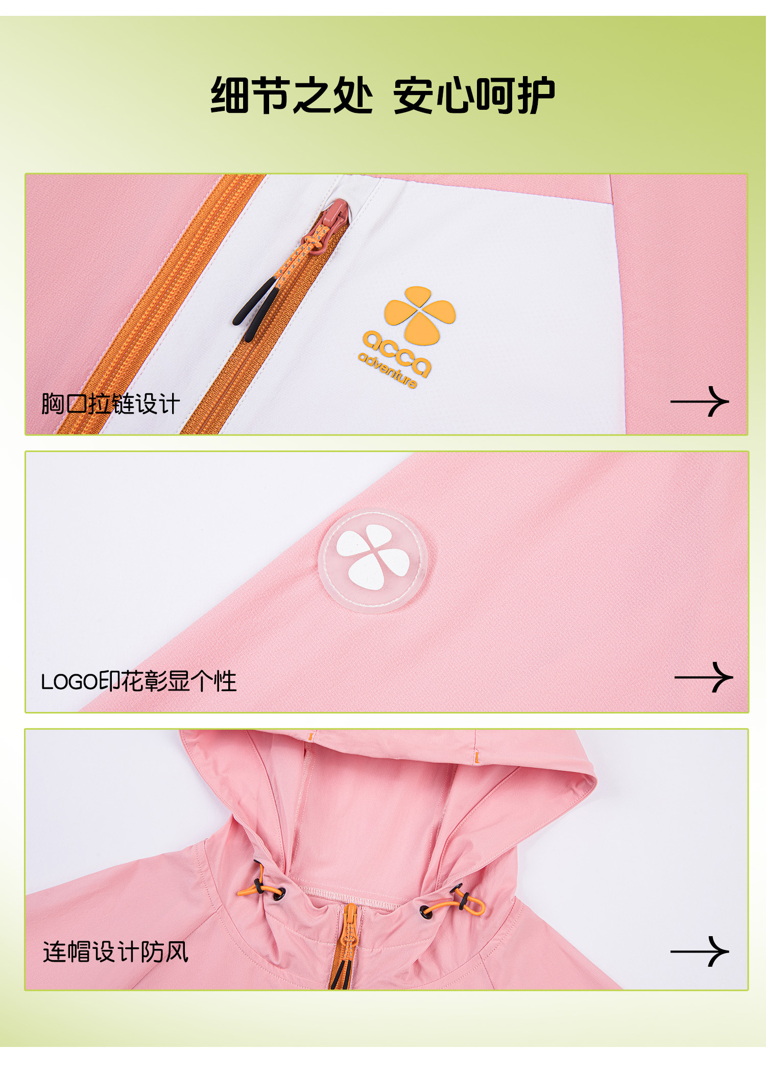 acca男女儿童户外运动梭织外套透气防晒轻薄透气吸湿排汗连帽外套