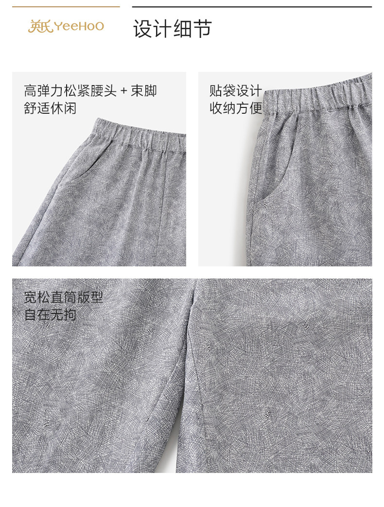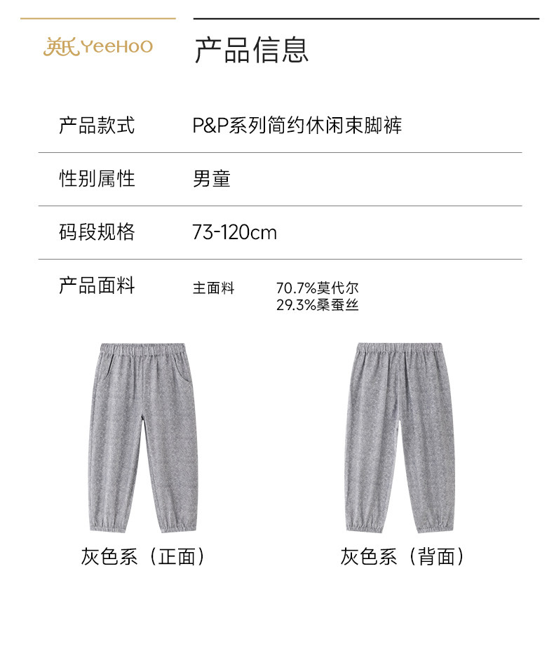英氏男童长裤夏季新款薄款休闲裤儿童透气裤子YRKCJ2S049A
