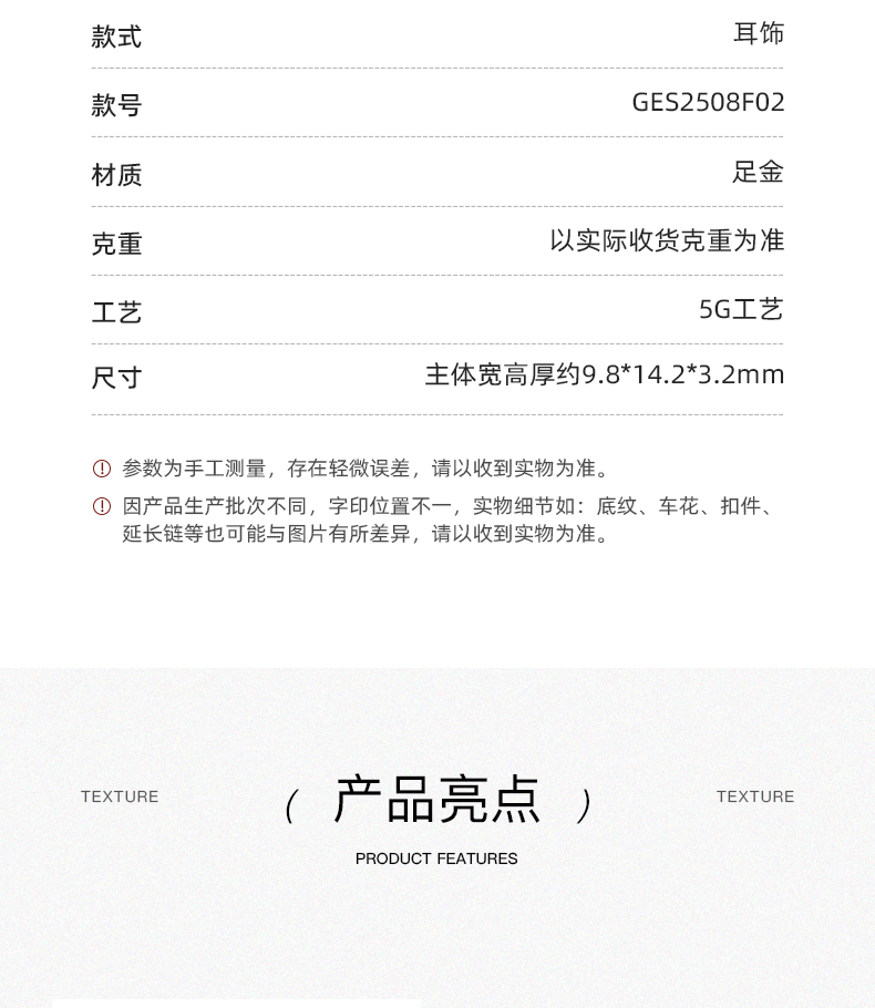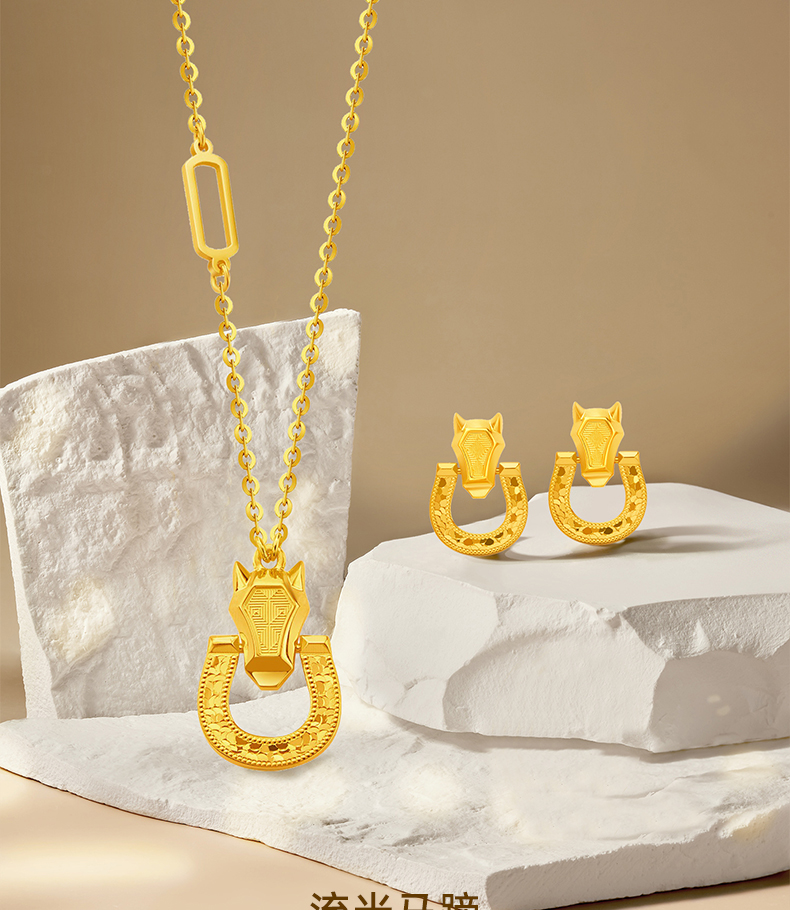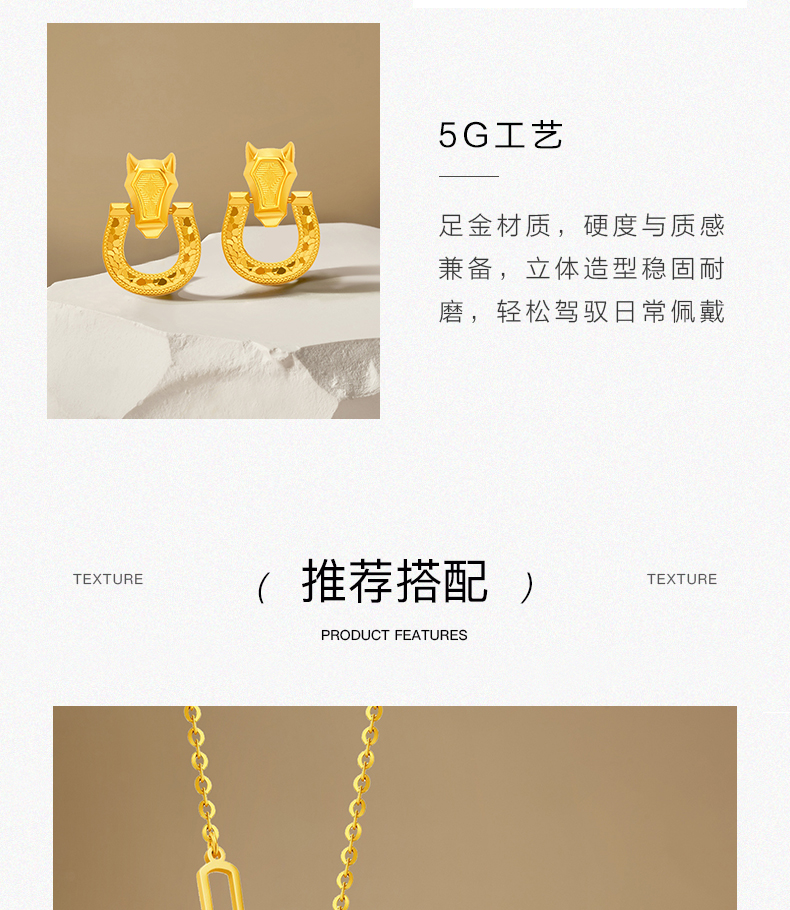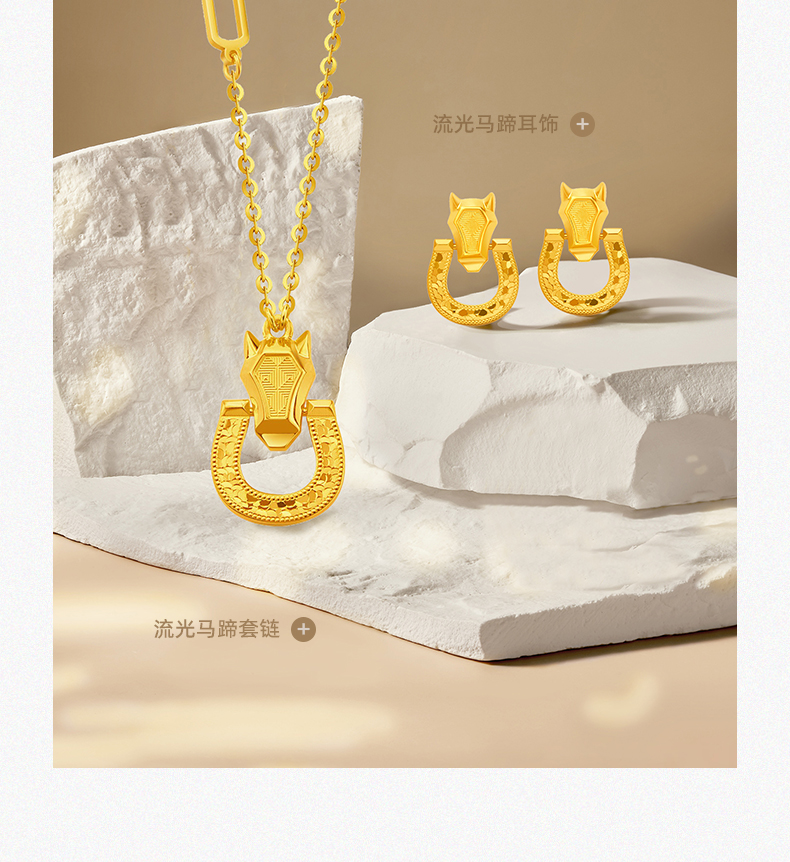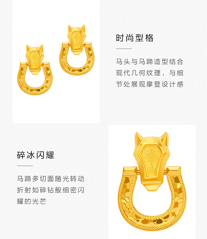 流光碎碎冰黄金马蹄耳钉 5G马蹄铁足金耳环耳饰送女友