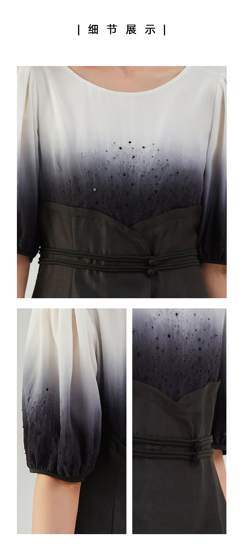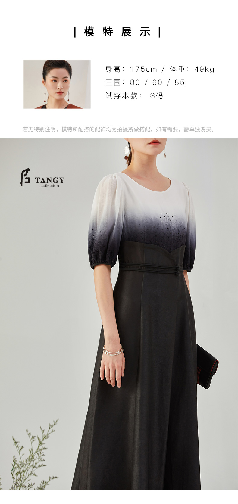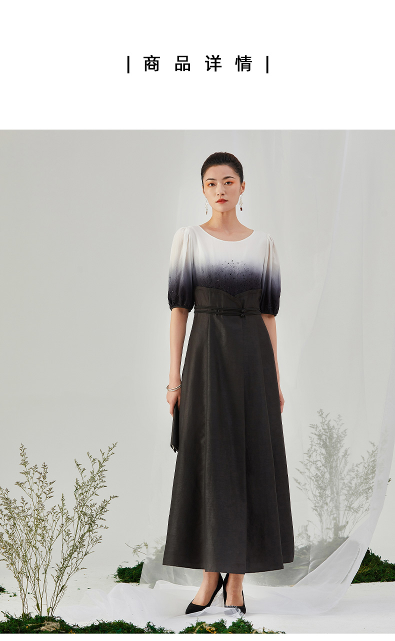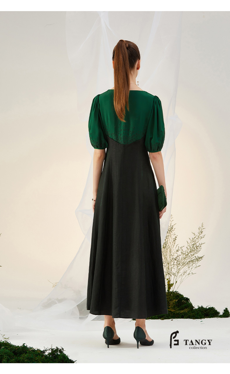 TANGY Collection/天意精品2021年秋季新品吊染拼撞莨绸高腰连衣裙