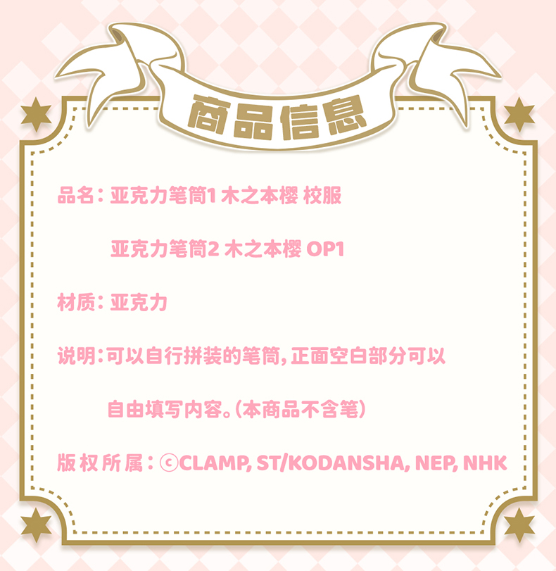 【GSC现货】魔卡少女樱25周年亚克力笔筒留言板小樱小可GSM