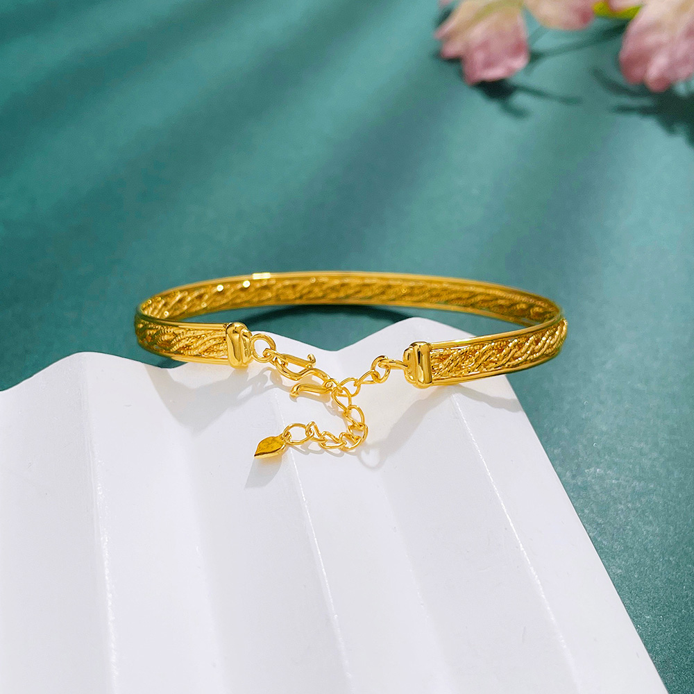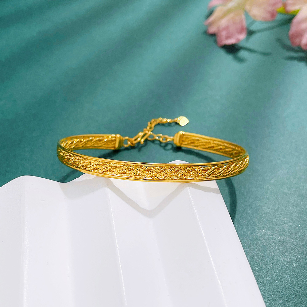 【限时克减150元】足金999 #绕线 (足金999字印)5G黄金空心开口浮光掠影麻花纹金丝编织手镯可调节链镯(5GSZ00115),(预售产品下单后不退款不退货不换货不补差价)