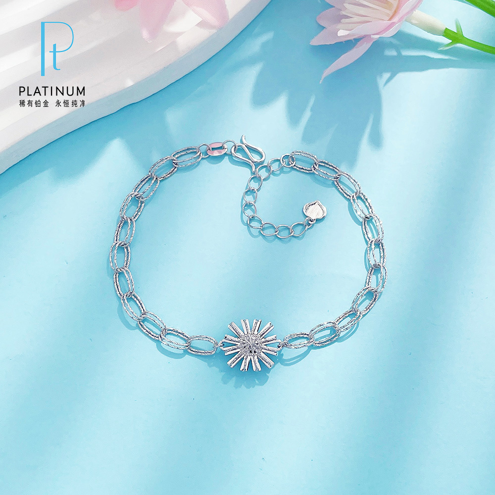 【限时8.8折】【线上铂金馆】PT950 #绕线 【国际铂金协会 精品】铂金镂空调节璀璨太阳花双层方环手链(ACPTSL00052)预售产品下单后不退款不退货不换货不补差价)