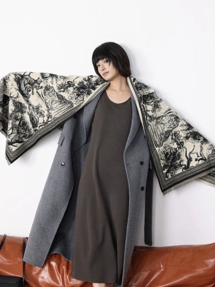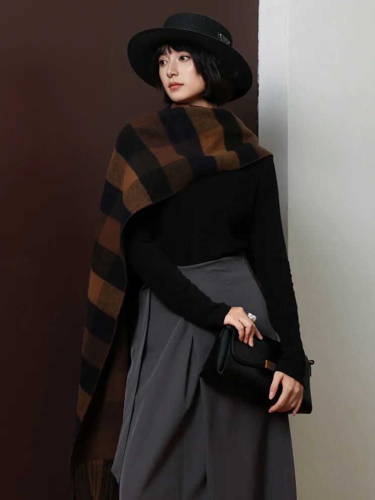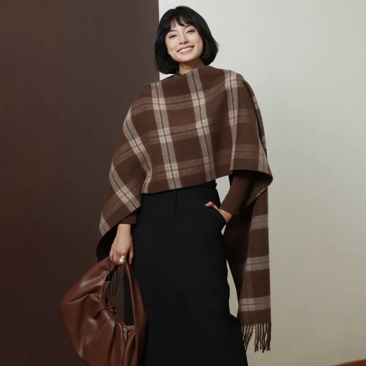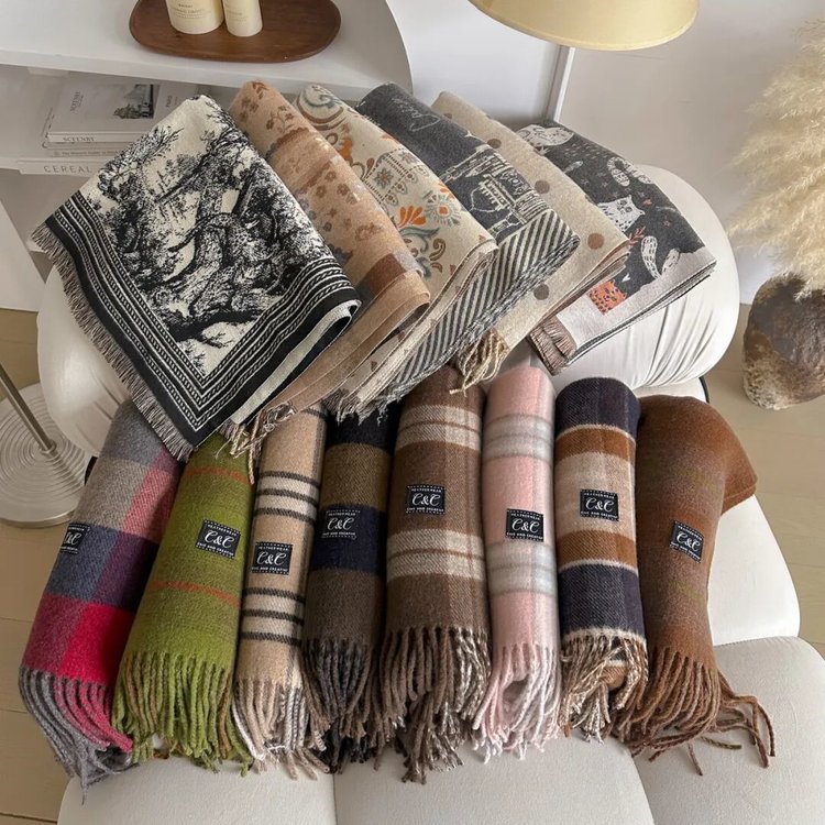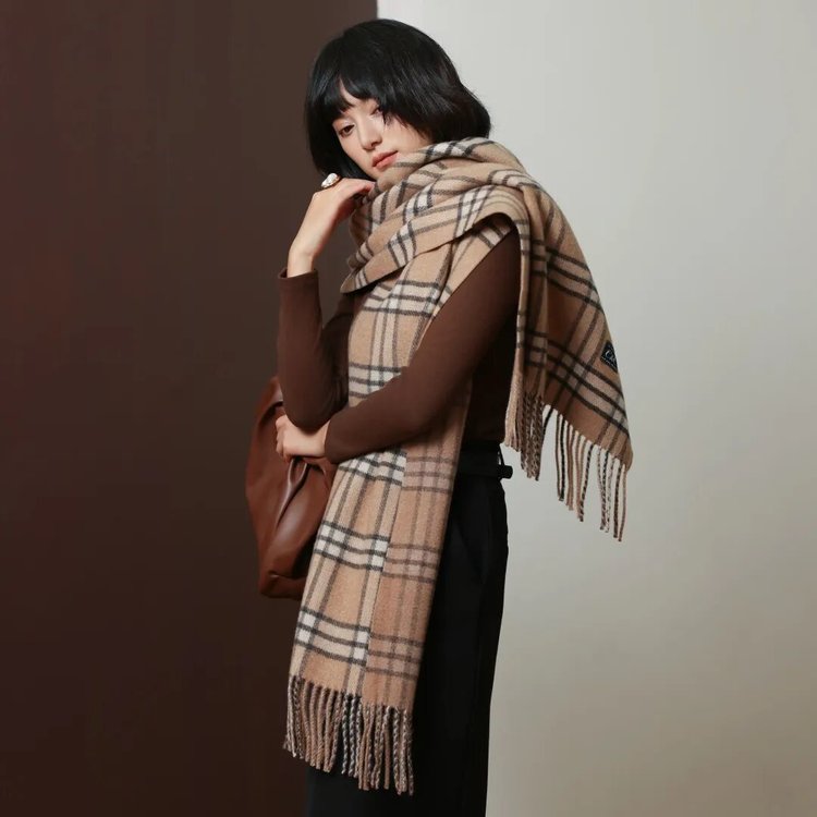 【C&C 明星款轻奢感羊毛/羊羔绒围巾】 超大尺寸 两面可戴 保暖舒适
