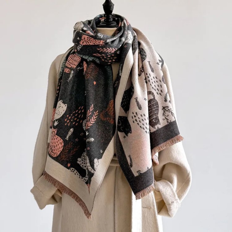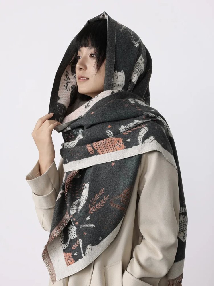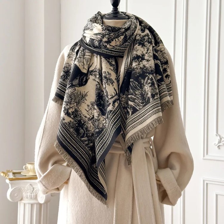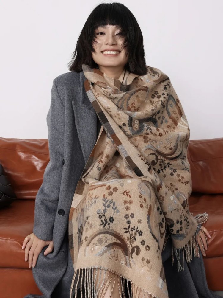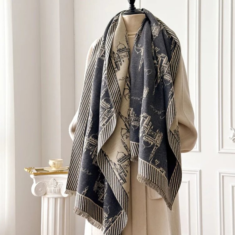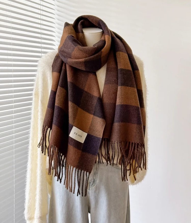 【C&C 明星款轻奢感羊毛/羊羔绒围巾】 超大尺寸 两面可戴 保暖舒适
