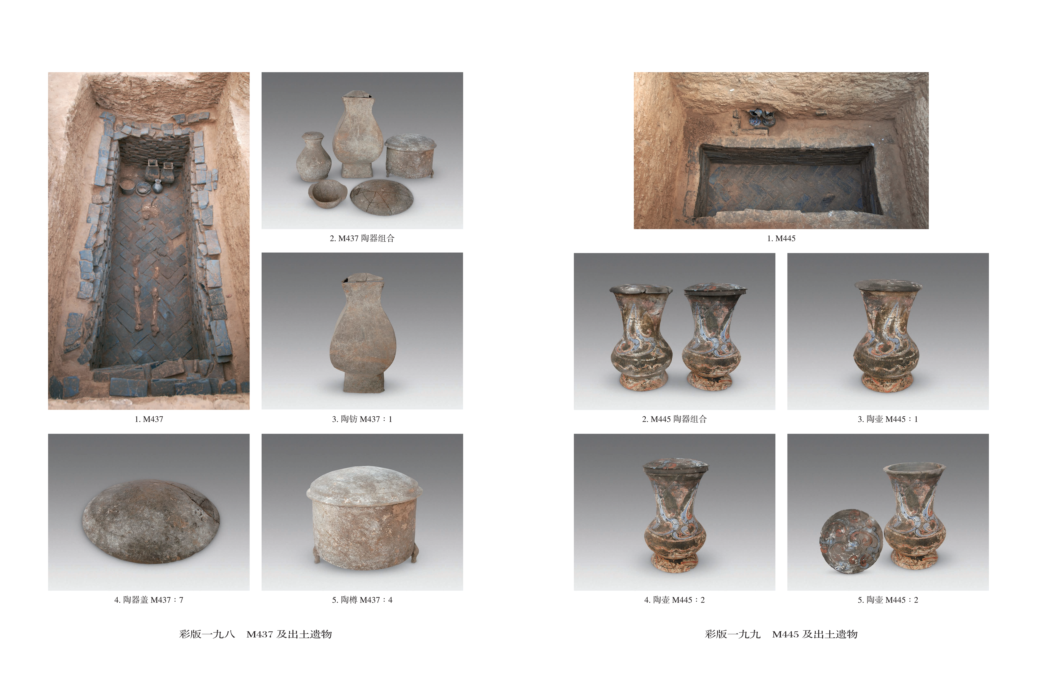 汉代墓葬791座,分为土坑墓、砖椁墓、瓦椁墓、瓮棺墓、瓦棺墓、砖室墓。土坑墓240座,均为长方形土坑竖穴,墓主多仰身直肢,有生土二层台和壁龛,个别有砖砌器物箱和器物台。砖椁墓472座,一般为单椁单棺,多设壁龛、器物箱、器物台和边箱。瓦椁墓11座,内填大量碎陶瓦片。瓮棺墓10座,为特殊葬式,无随葬品,多为两件陶瓮相扣成棺,内有人骨平躺棺内。瓦棺墓1座,大板瓦垒砌制作成瓦棺,属于迁葬。砖室墓57座,分甲字形、中字形、长方形、刀字形,其中甲字形墓最多,一般由斜坡墓道、墓门、甬道、墓室组成。汉墓随葬品以陶器为主,有少量铜器、铁器、石器和漆器等。随葬陶器多泥质陶,以灰和褐陶为主,有少量彩绘陶,器类有陶罐、壶、钫、钵、扁壶、耳杯、俑等和少量釉陶器。铜器有铜镜、铜钱、刷柄、带钩、车马饰件、弩机、印章等。铁器为铁剑、环首刀、镜架、夯具、锸、镢、削等。石器有石黛板、石研磨器、剑格、剑首、剑璏、耳塞、口琀等。骨器仅有骨耳珰、鼻塞、笄。漆器无法复原,皮具则均腐朽。