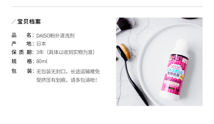 【香港直邮】日本Daiso/大创粉扑清洁剂海绵/化妆刷/专用清洗液80ml/瓶
