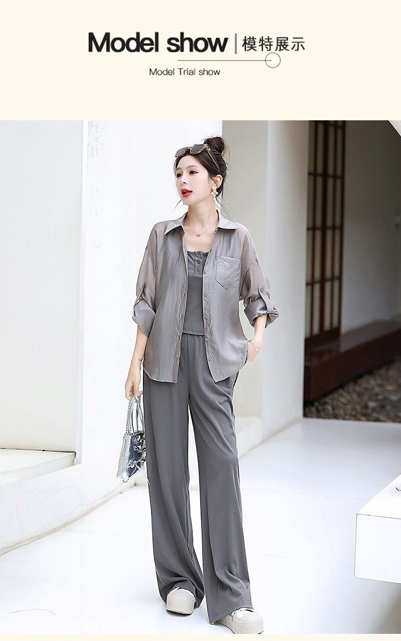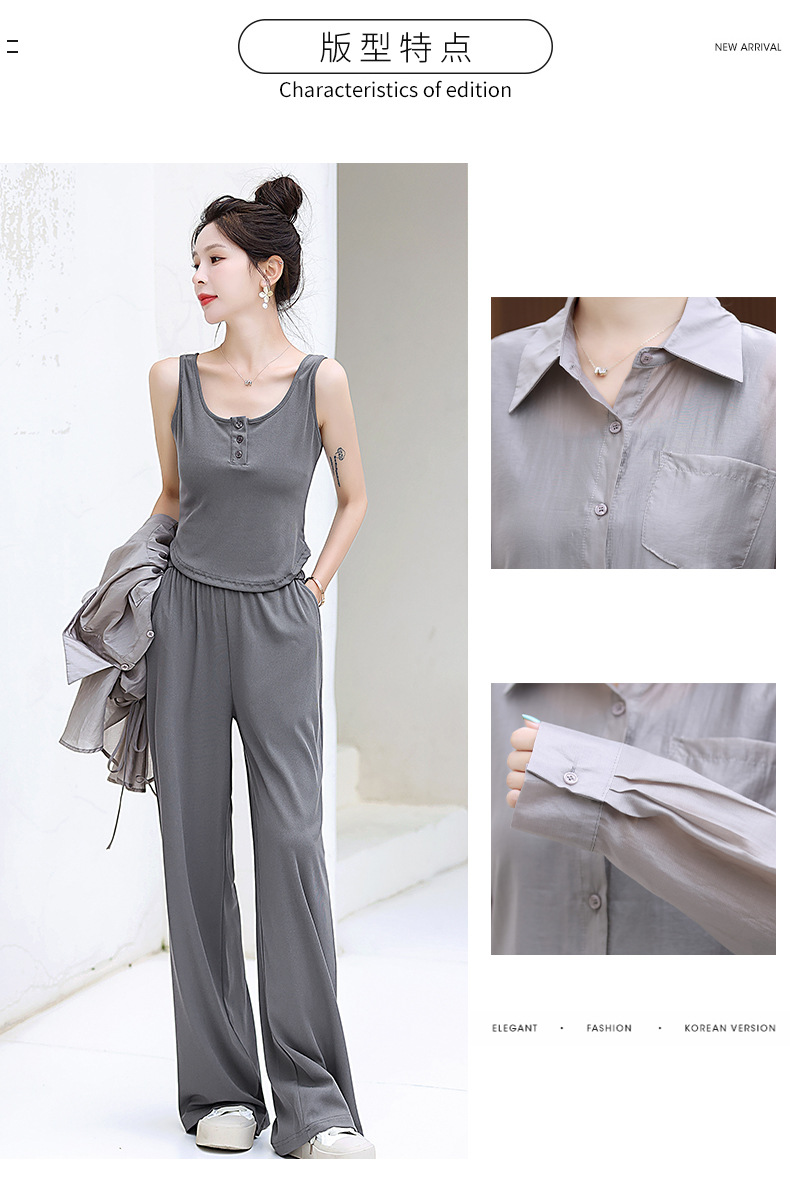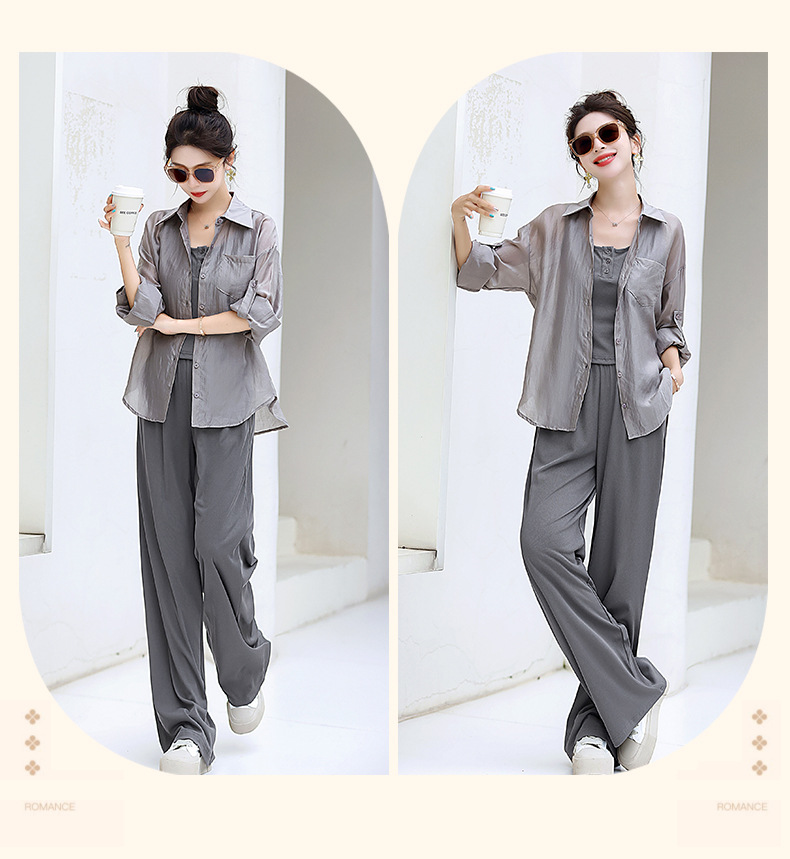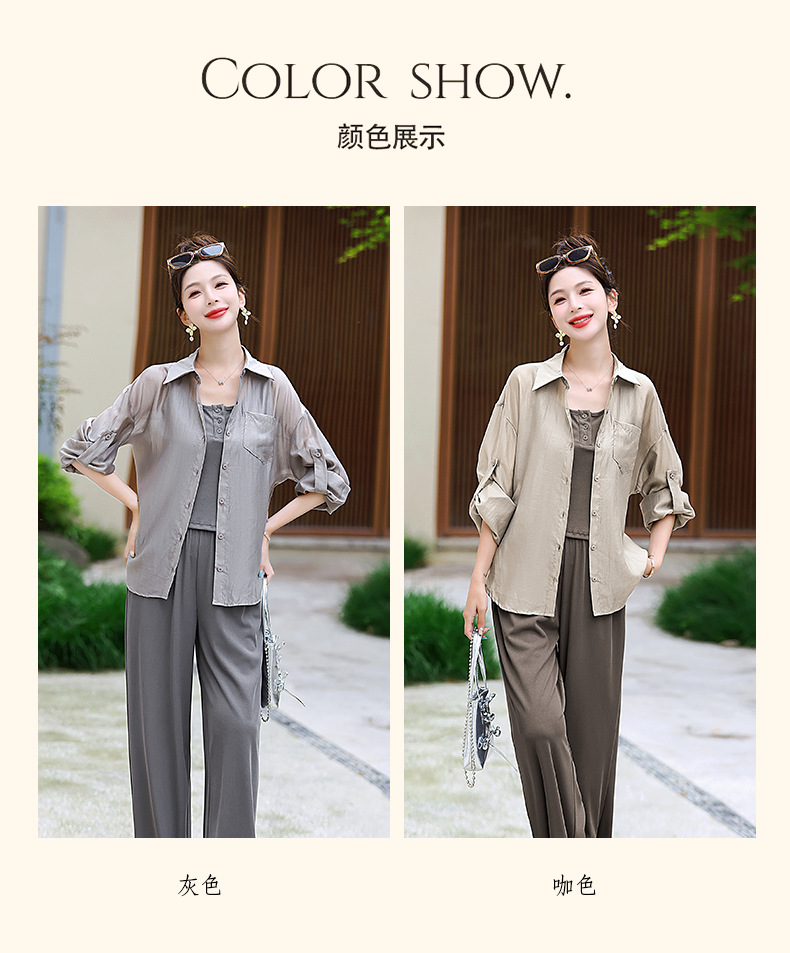 防晒衬衫背心裤子三件套,时尚休闲洋气减龄套装HR-YIZX86136