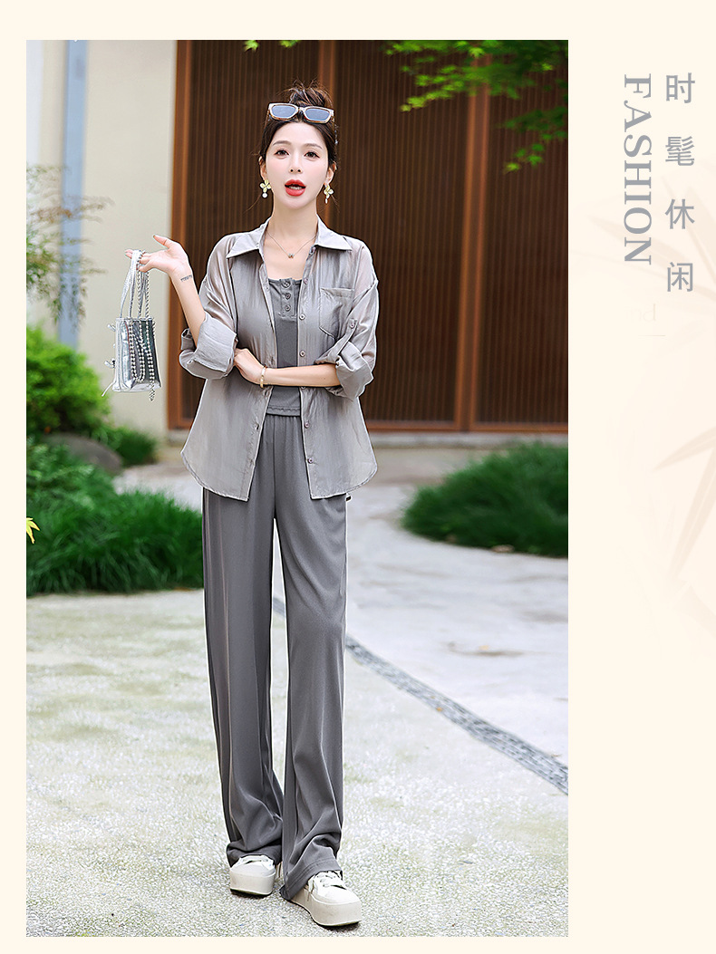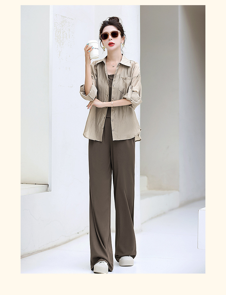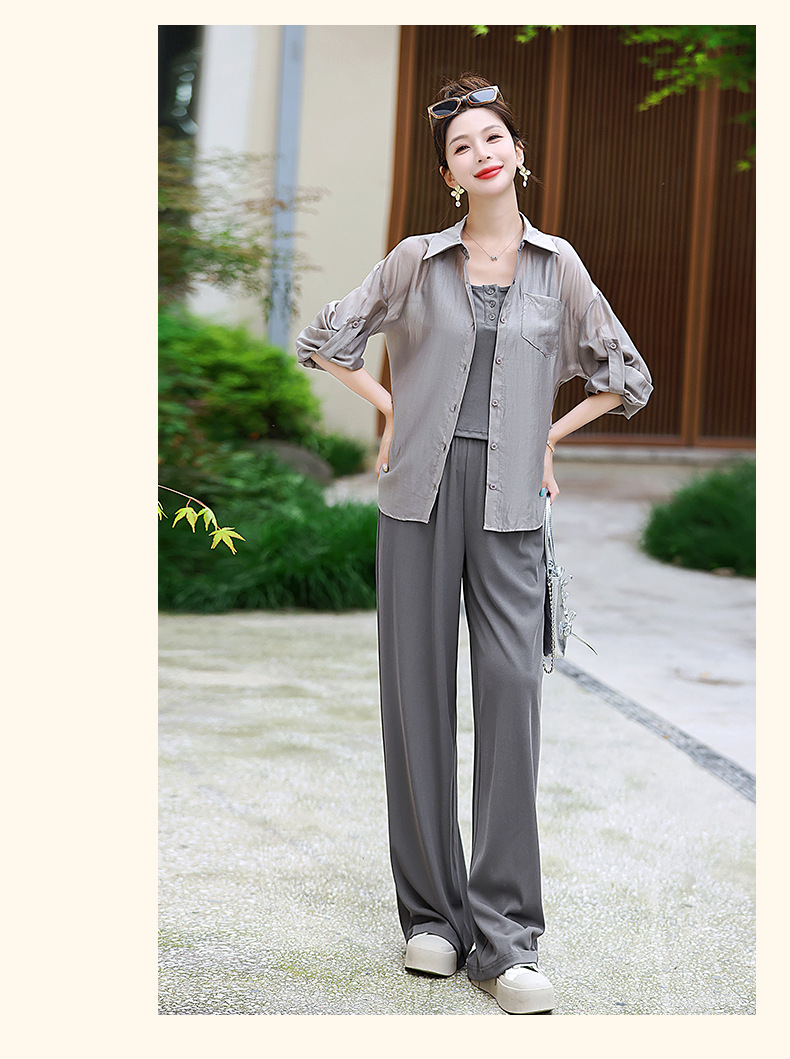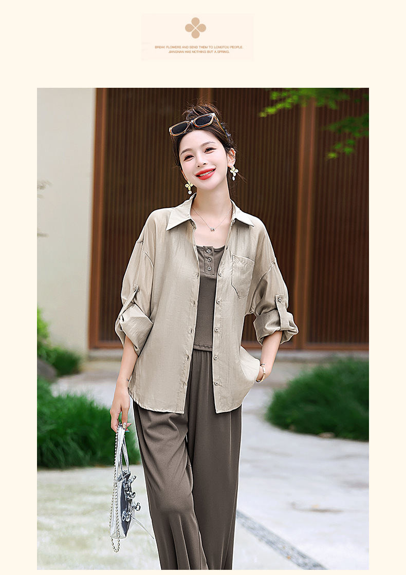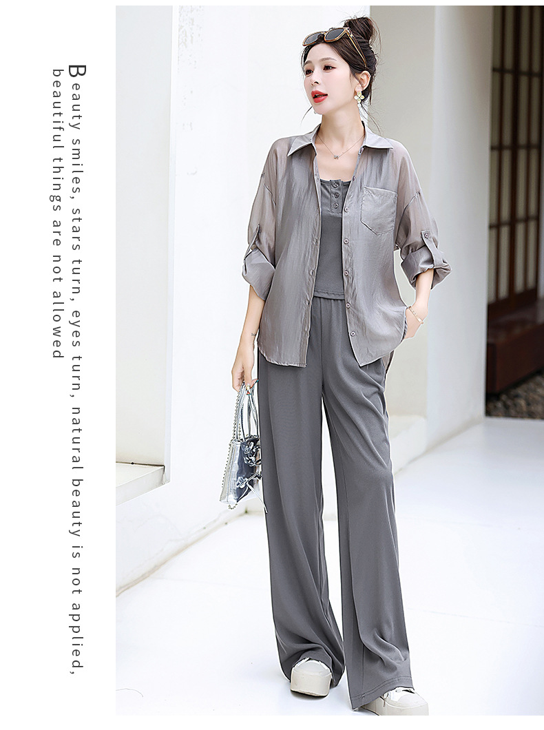 防晒衬衫背心裤子三件套,时尚休闲洋气减龄套装HR-YIZX86136