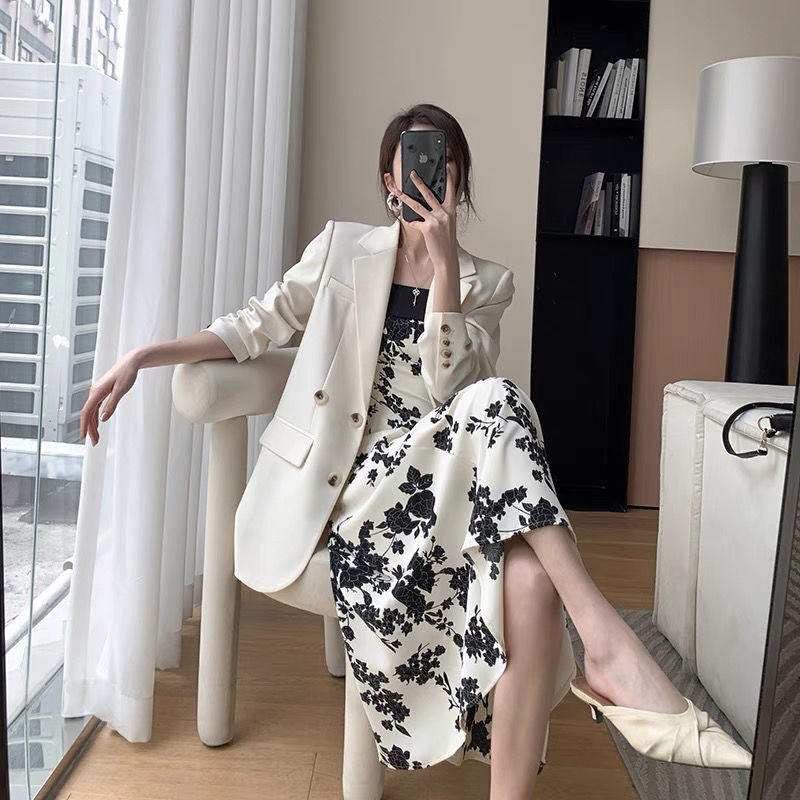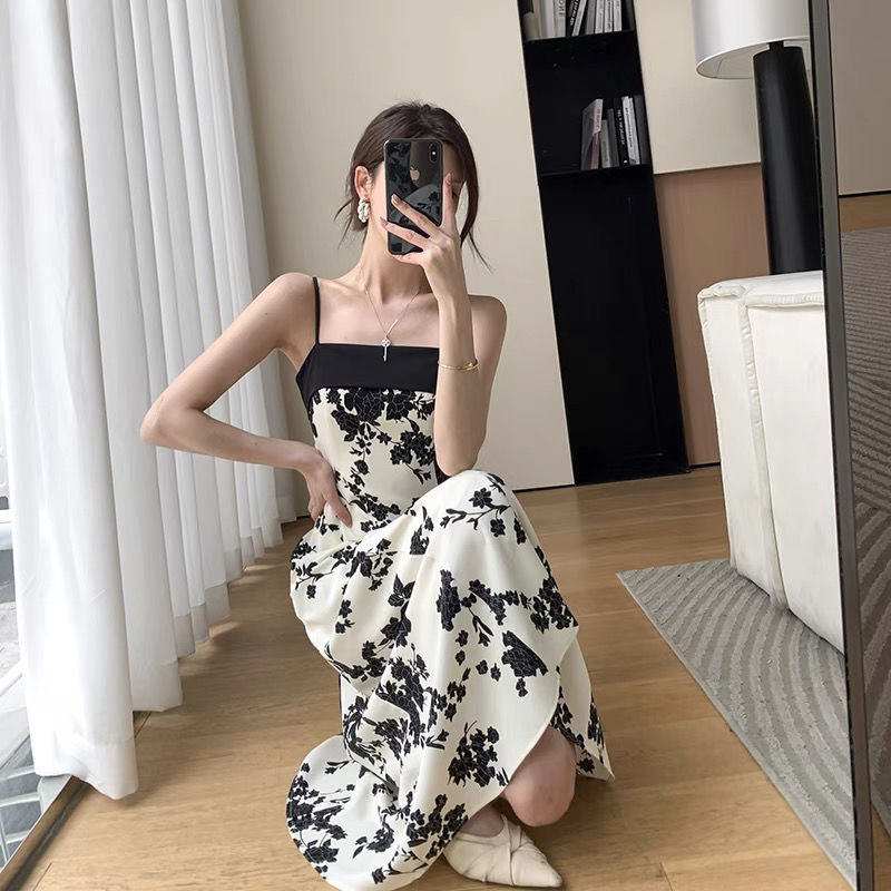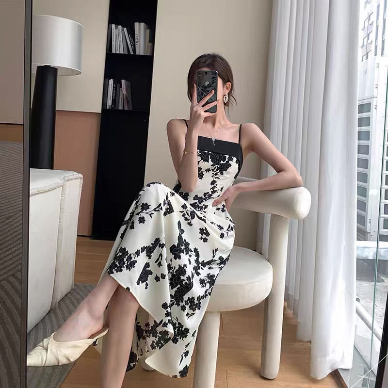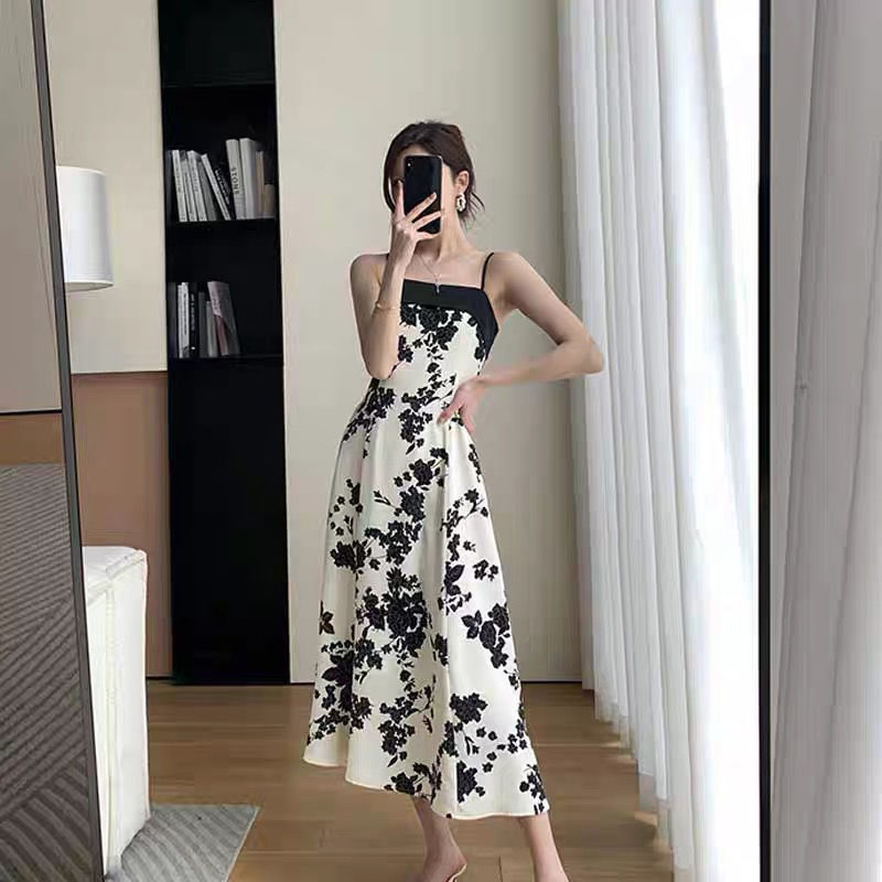 黛唯梵轻奢连衣裙氛围感吊带碎花裙女2022夏季新款度假风复古法式桔梗裙子国庆出游