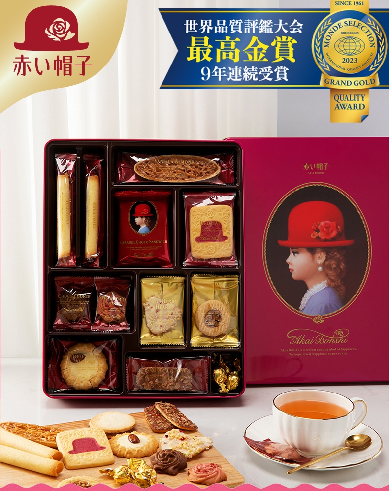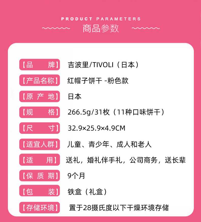 日本红帽巧克力什锦饼干粉色礼盒266.5g/058070 造型精美口味细腻11种口味饼干31枚