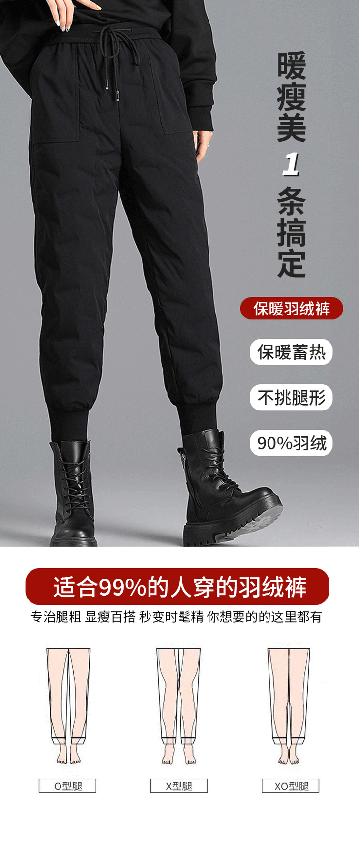 【暖瘦美一条搞定】羽绒裤男女情侣 90%鸭绒加厚 户外运动 直筒裤棉裤 休闲保暖时尚