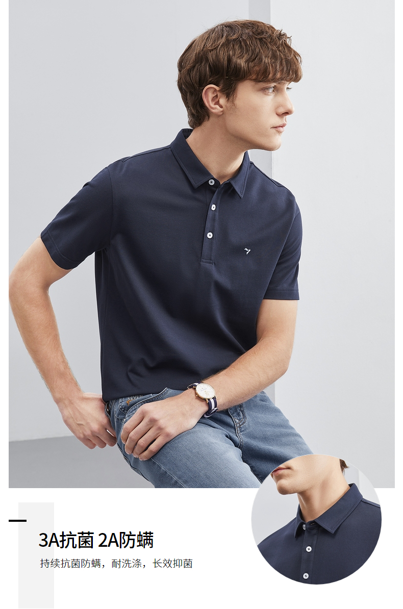 【3A抗菌/2A防螨】柒牌polo衫男短袖夏季薄款休闲商务多色翻领T恤 126T70050
